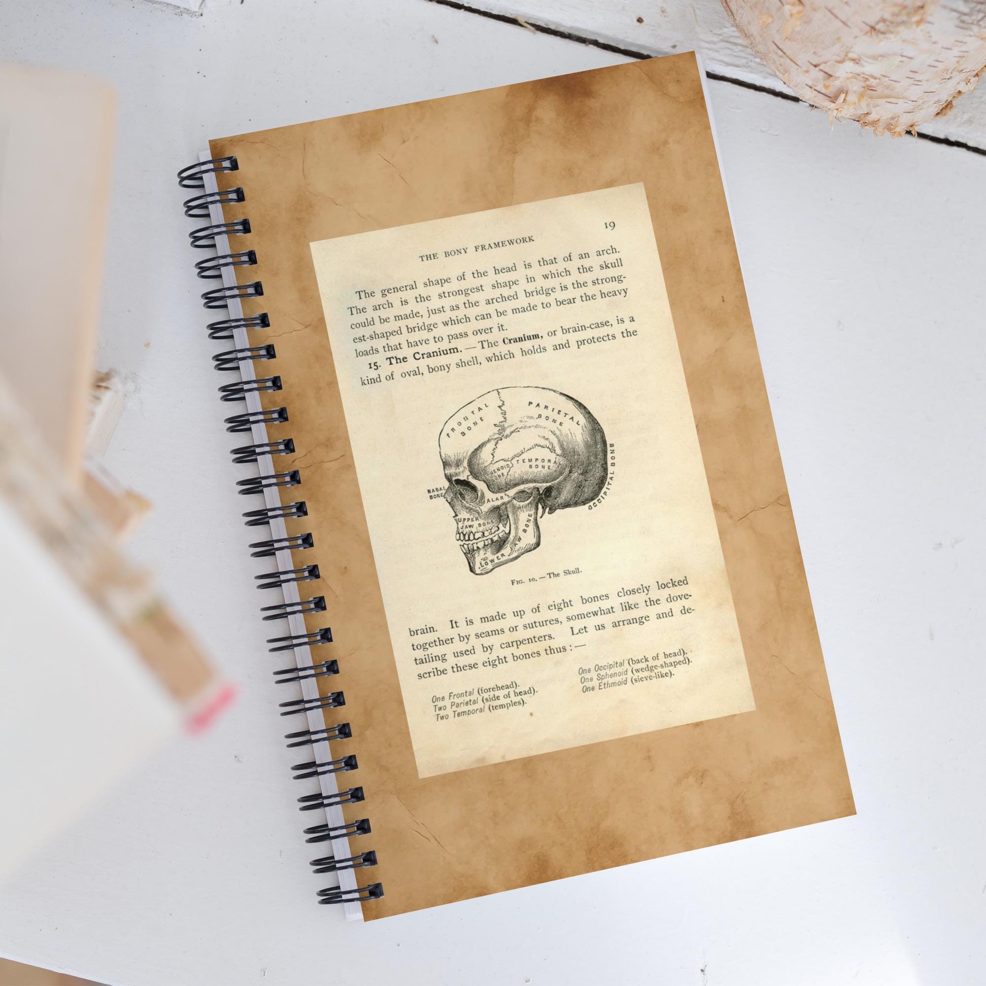 Dark Academia Notebook – Vintage Anatomy Skull Antique Medical Page | Gothic Stationery Gift
