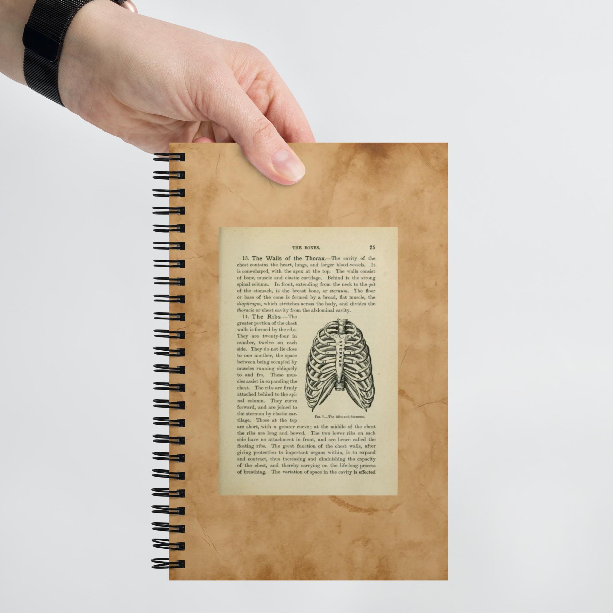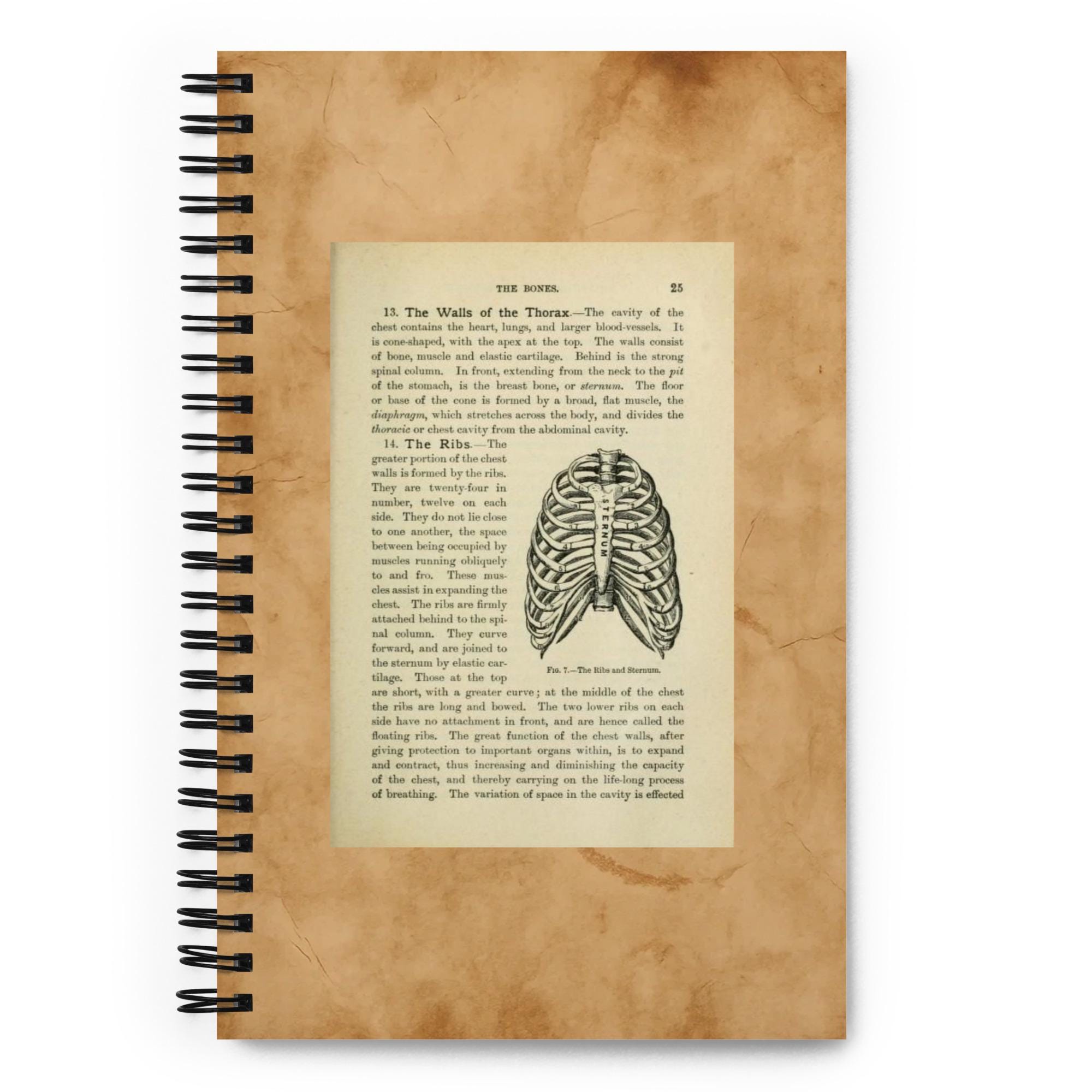 Dark Academia Notebook – Vintage Ribcage Journal with Antique Medical Page | Gothic Stationery Gift