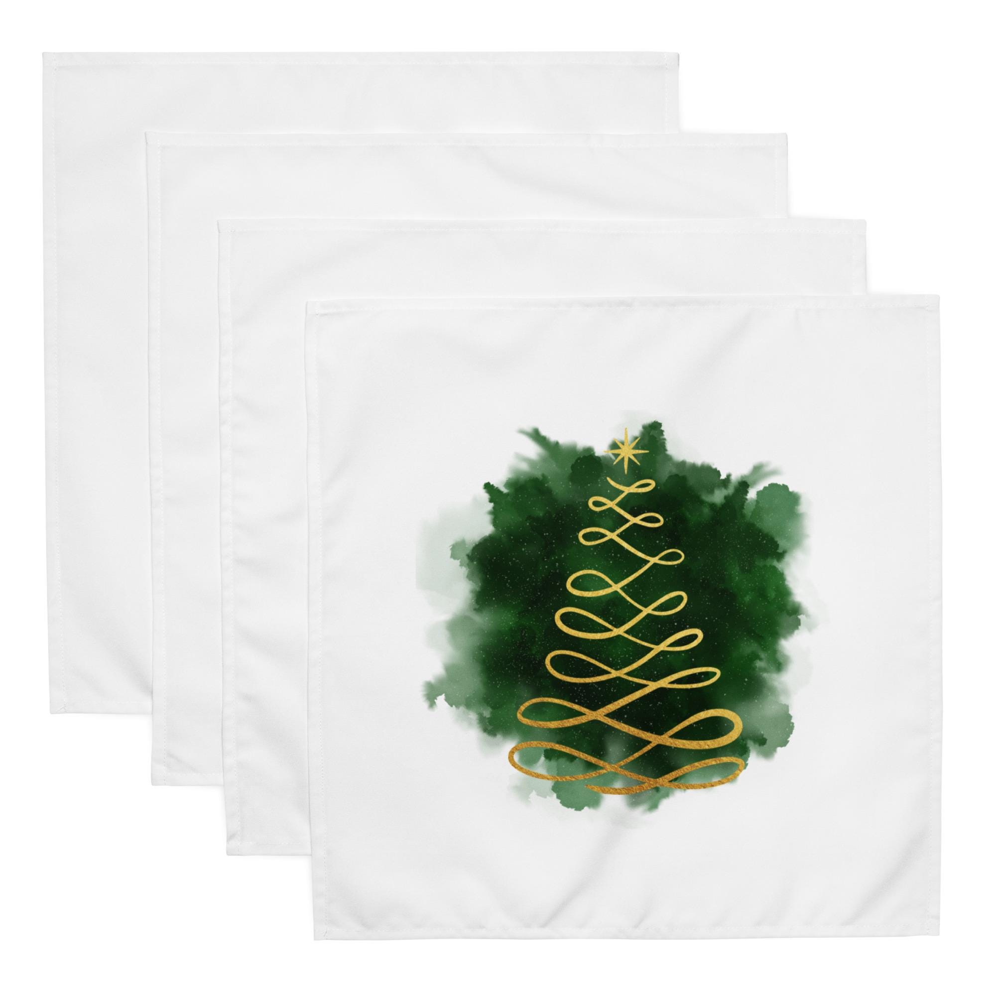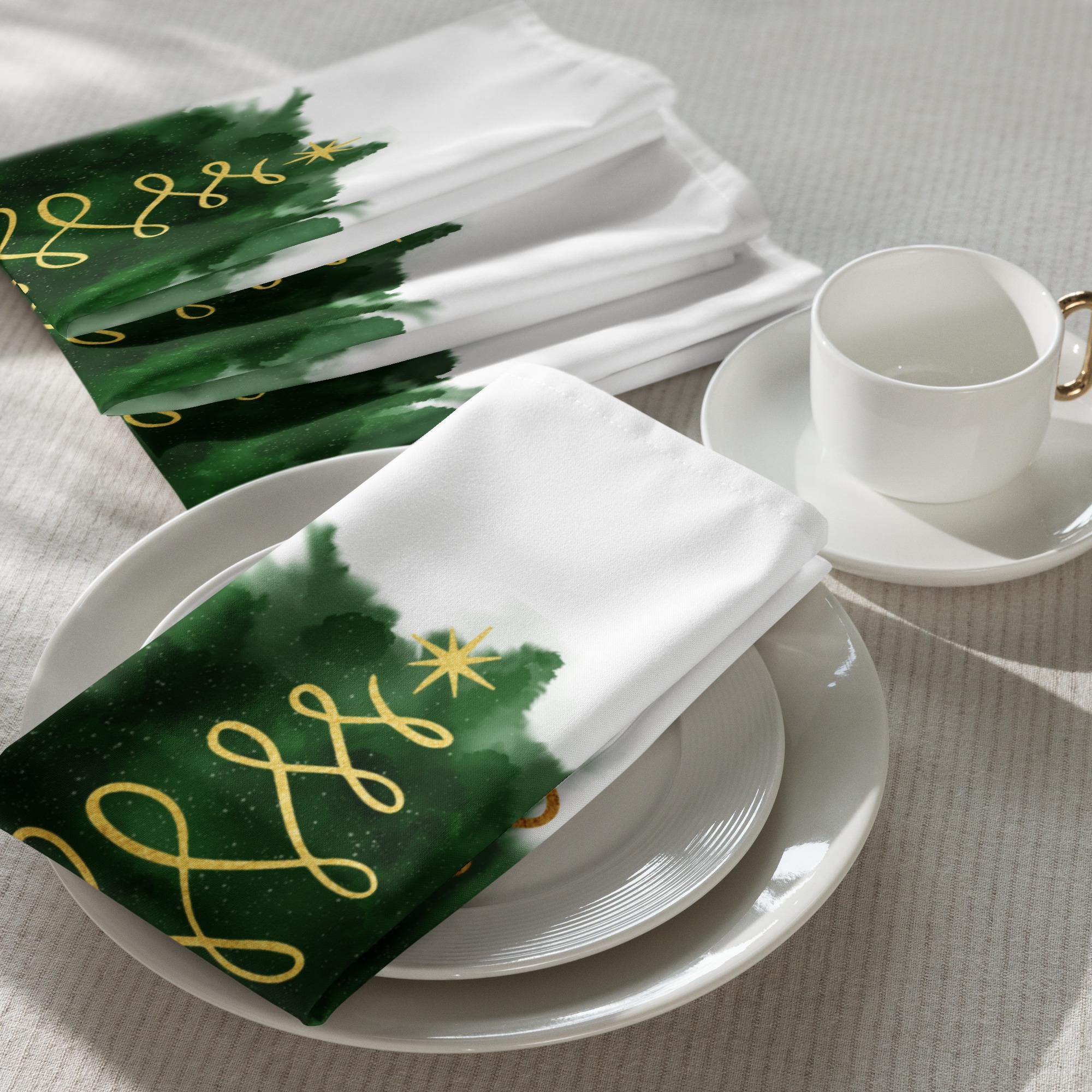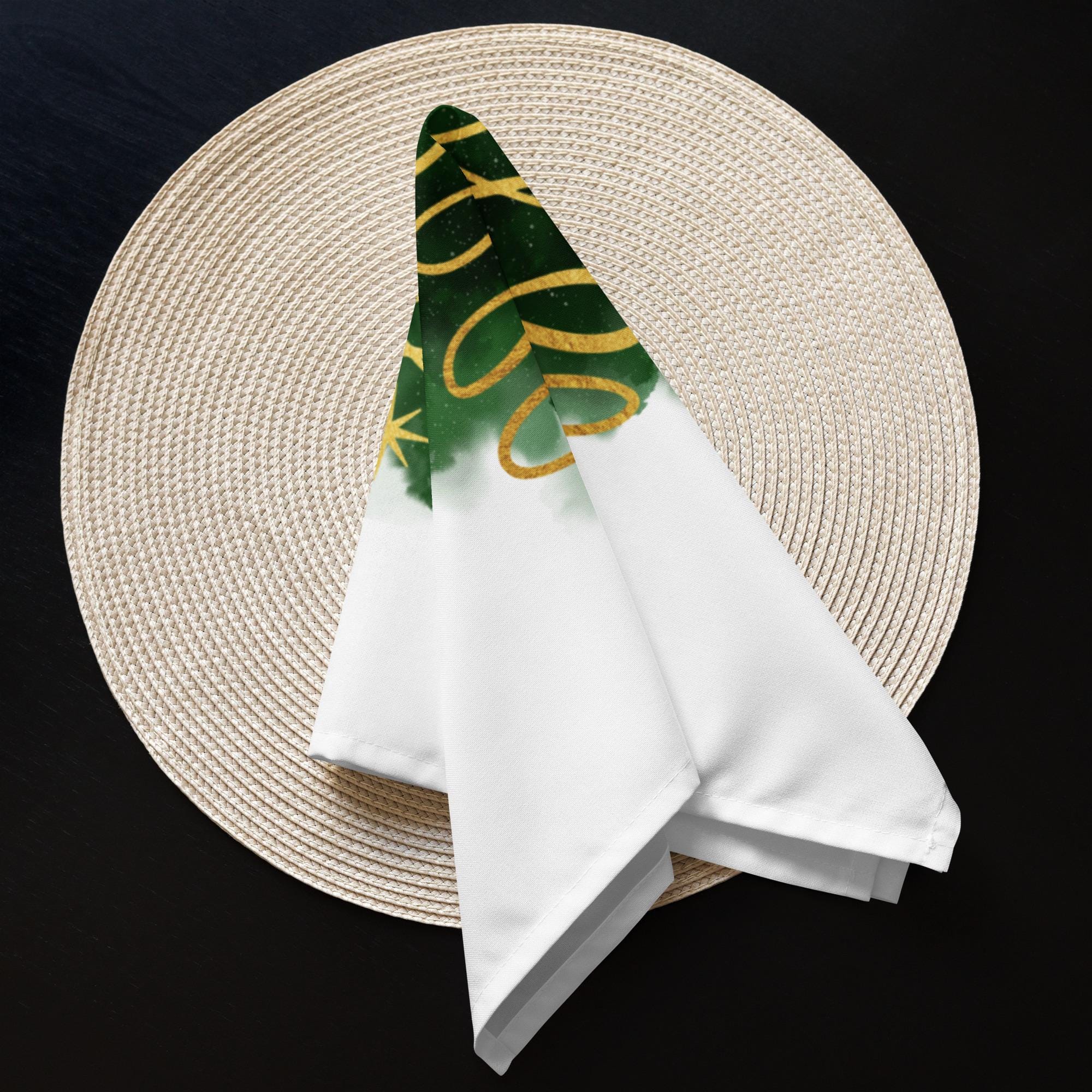 Add a touch of refined holiday charm to your table with this set of four cloth napkins, each featuring a minimalist gold Christmas tree on a crisp white background. Elegant and understated, these napkins bring a modern festive feel to Christmas dinners, winter gatherings, and holiday brunches alike.