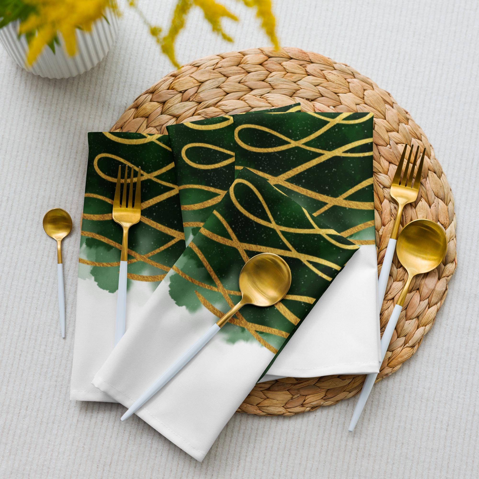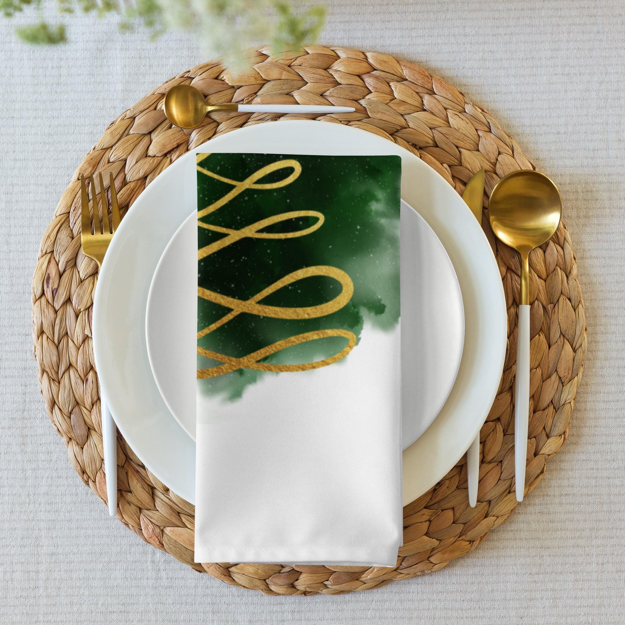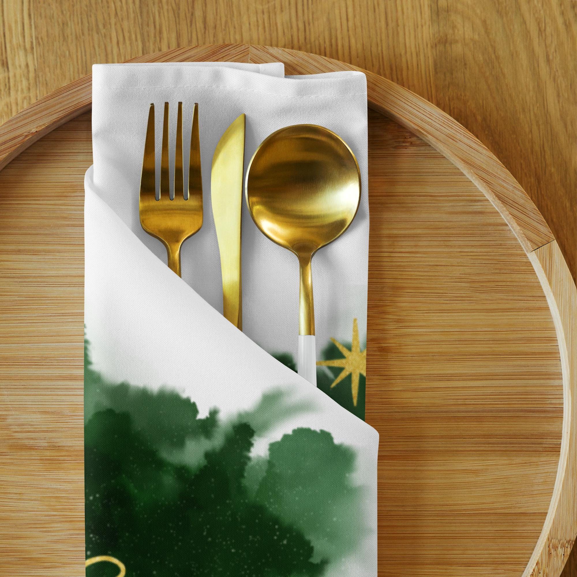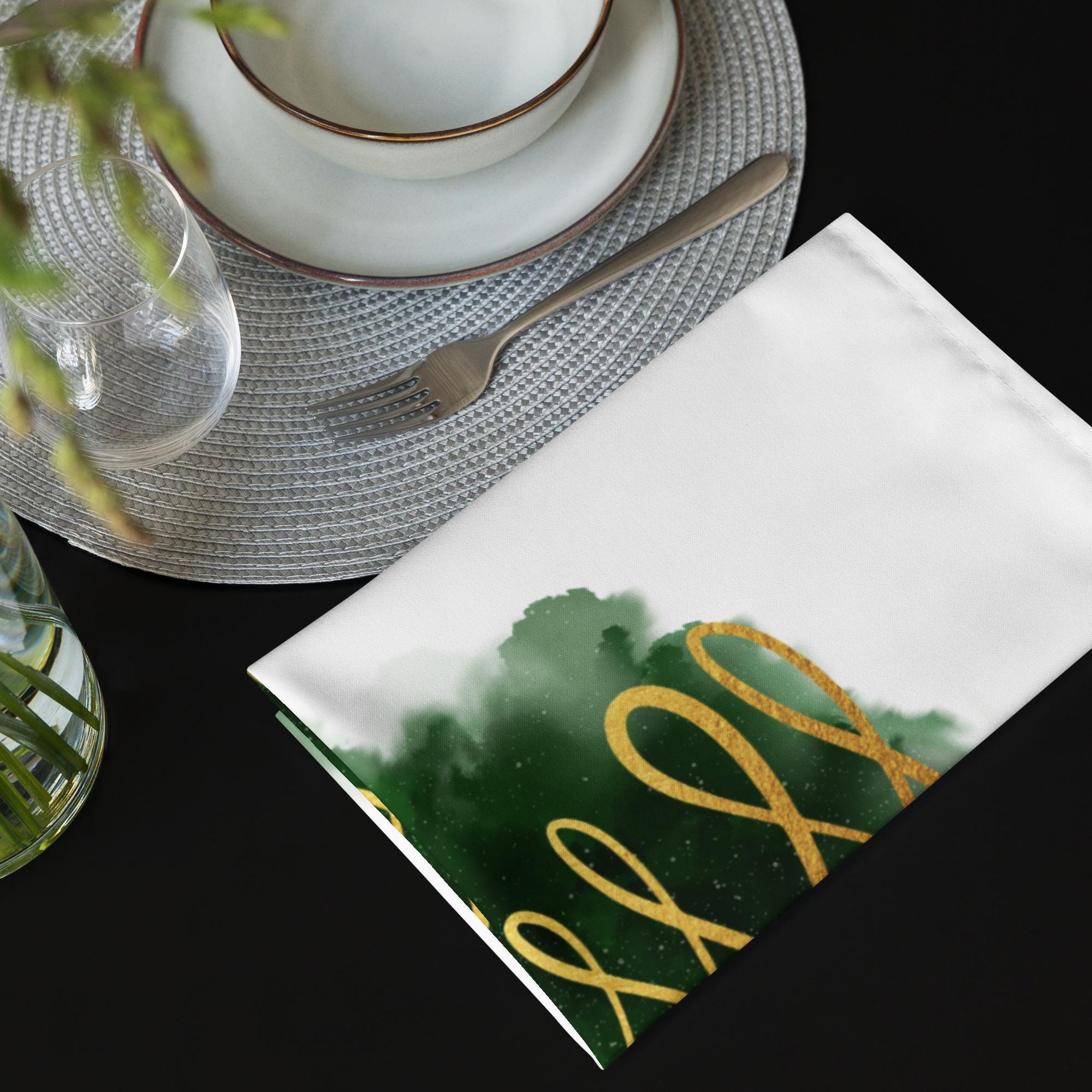 Add a touch of refined holiday charm to your table with this set of four cloth napkins, each featuring a minimalist gold Christmas tree on a crisp white background. Elegant and understated, these napkins bring a modern festive feel to Christmas dinners, winter gatherings, and holiday brunches alike.