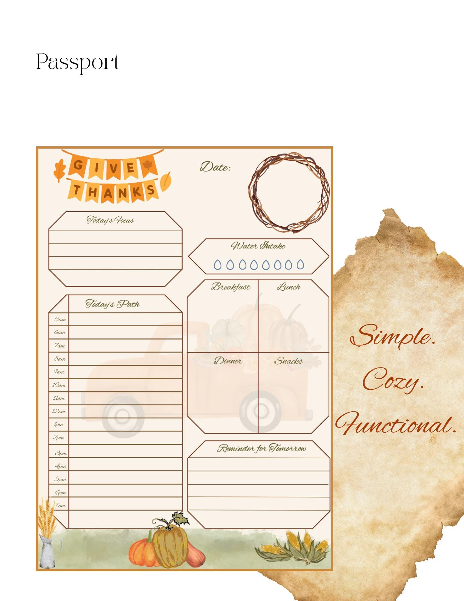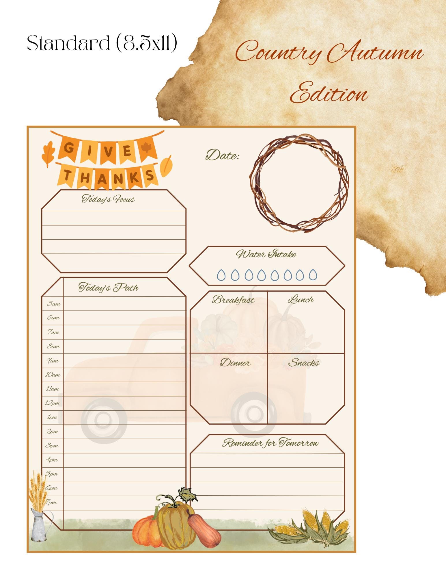 Capture the charm of country autumns. This rustic farmhouse daily planner brings warmth and simplicity to your harvest days. Embrace cozy routines with the Rustic Farmhouse Harvest Edition Daily Planner Printable, inspired by simple living and soft rustic charm. Perfect for homesteads, kitchens, or anyone who loves the feel of warm autumn mornings. Stay on top of your day and print as many pages as you need — this planner is yours to reprint forever, making it a timeless part of your fall planning.