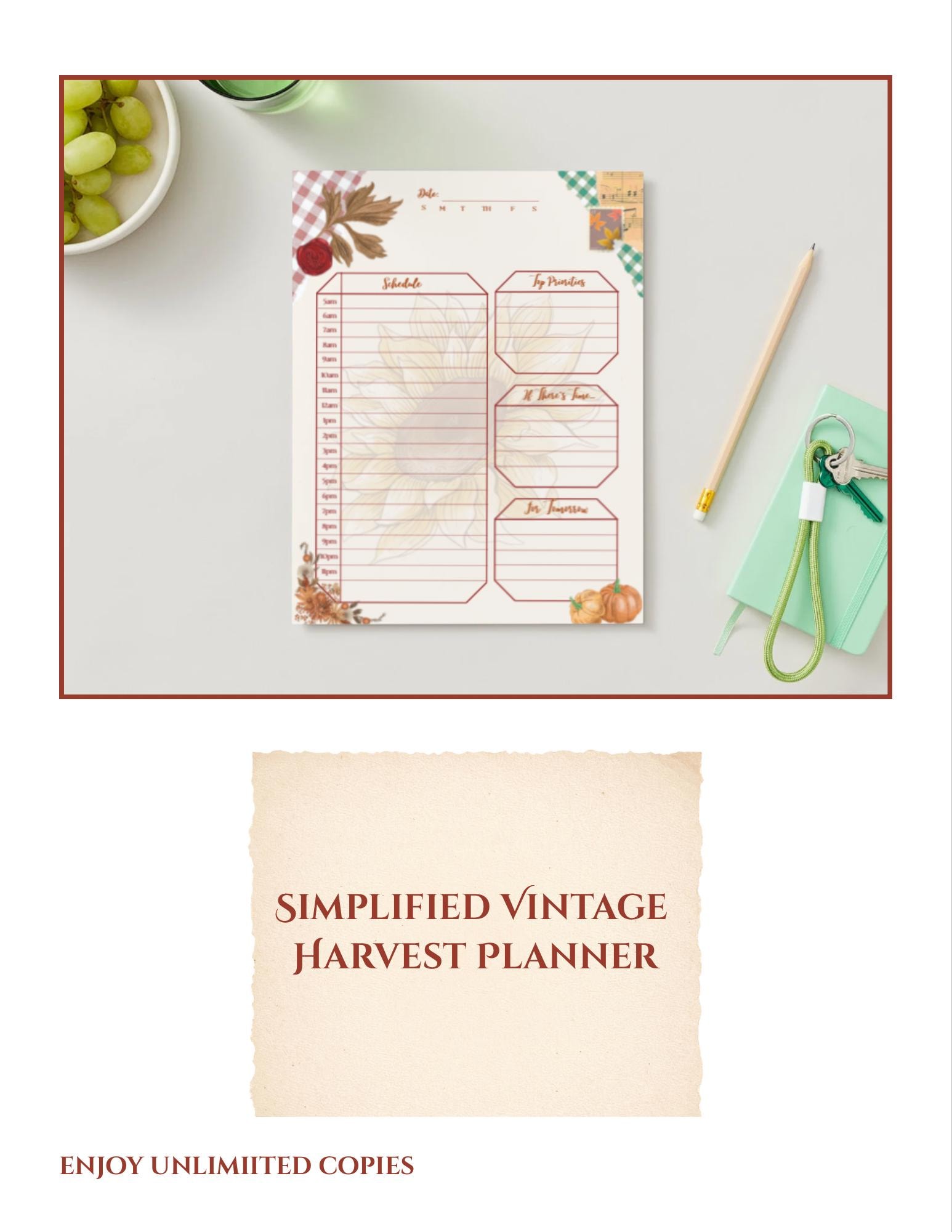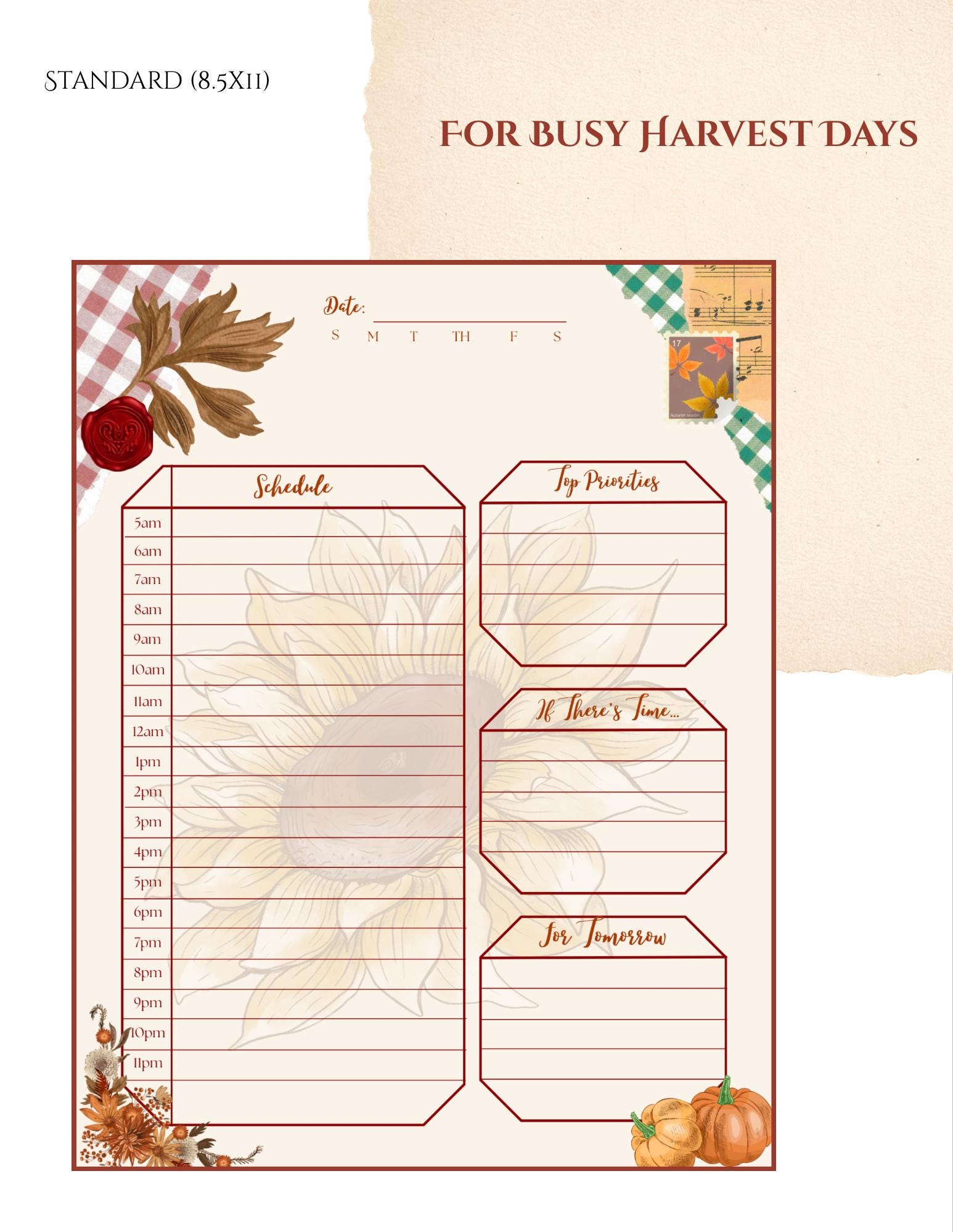 Design Details: Classic vintage elements — softly aged textures, elegant stamps, and subtle antique accents — make this planner both functional and beautiful for the harvest season.