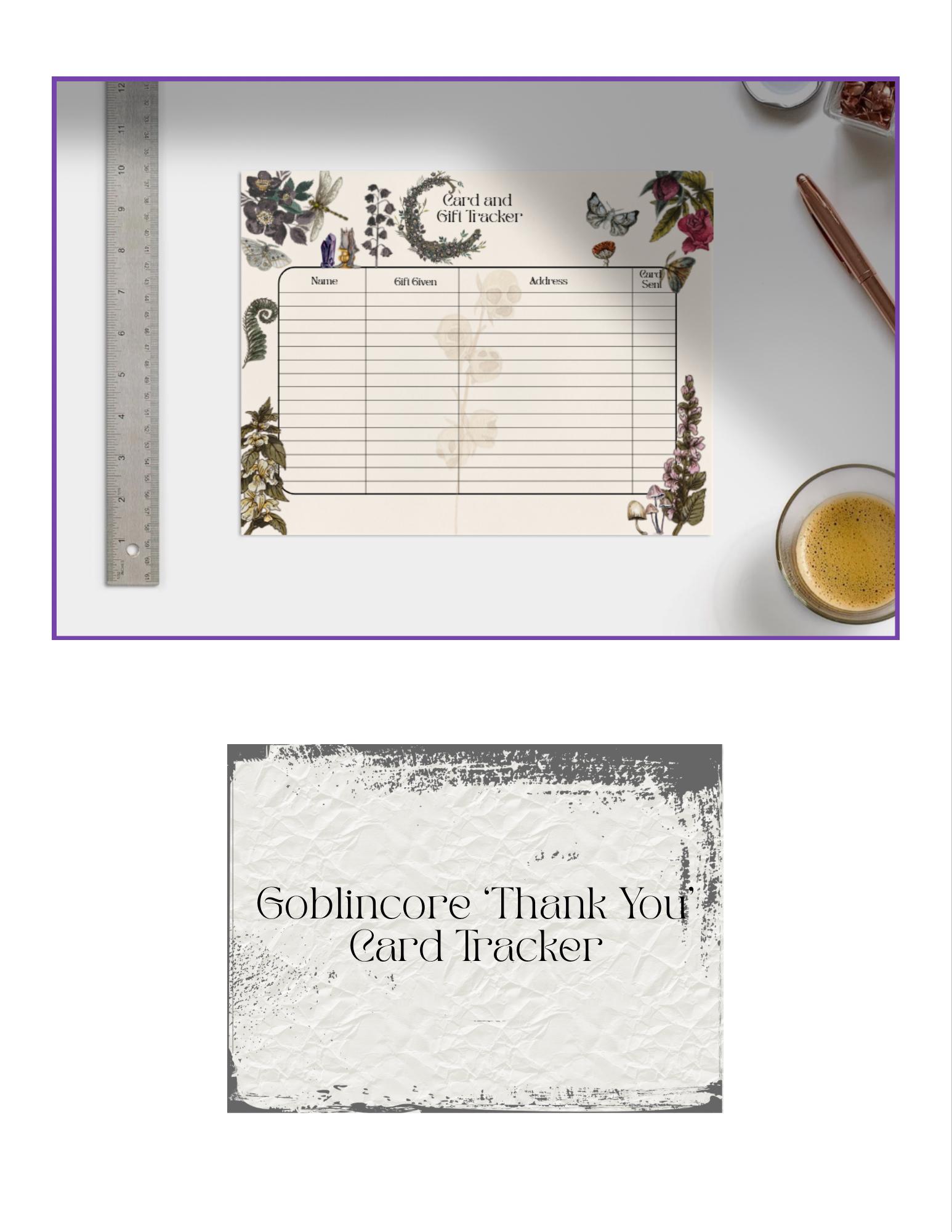 Embrace cozy chaos and heartfelt gratitude with this Goblincore Thank You Card Tracker — a printable for the earthy soul who loves to stay organized.