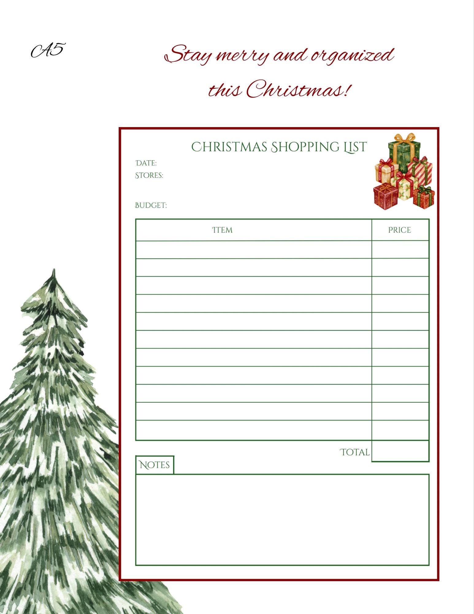 Pairs beautifully with the Christmas Meal Planner and Christmas Gift Tracker — for a complete festive organization set.