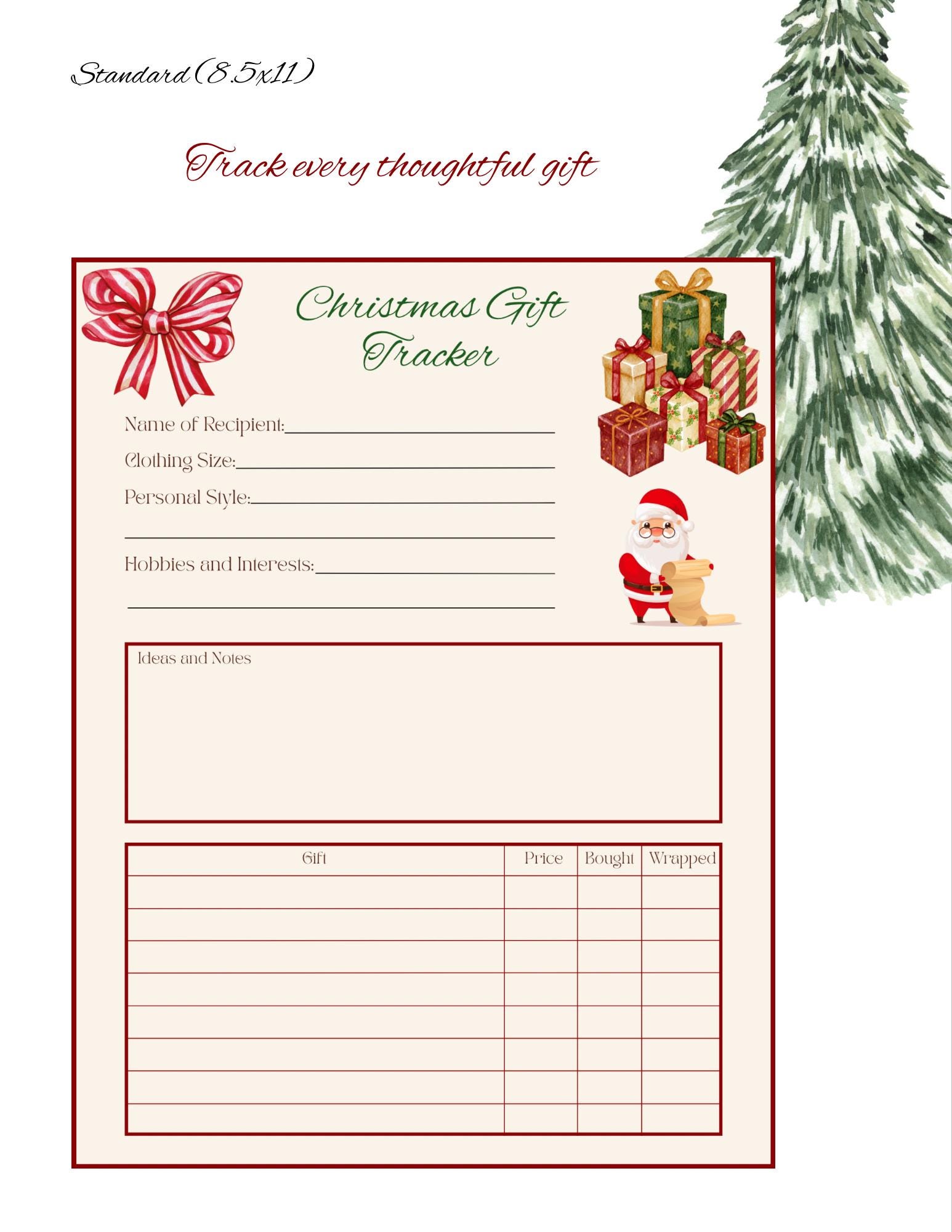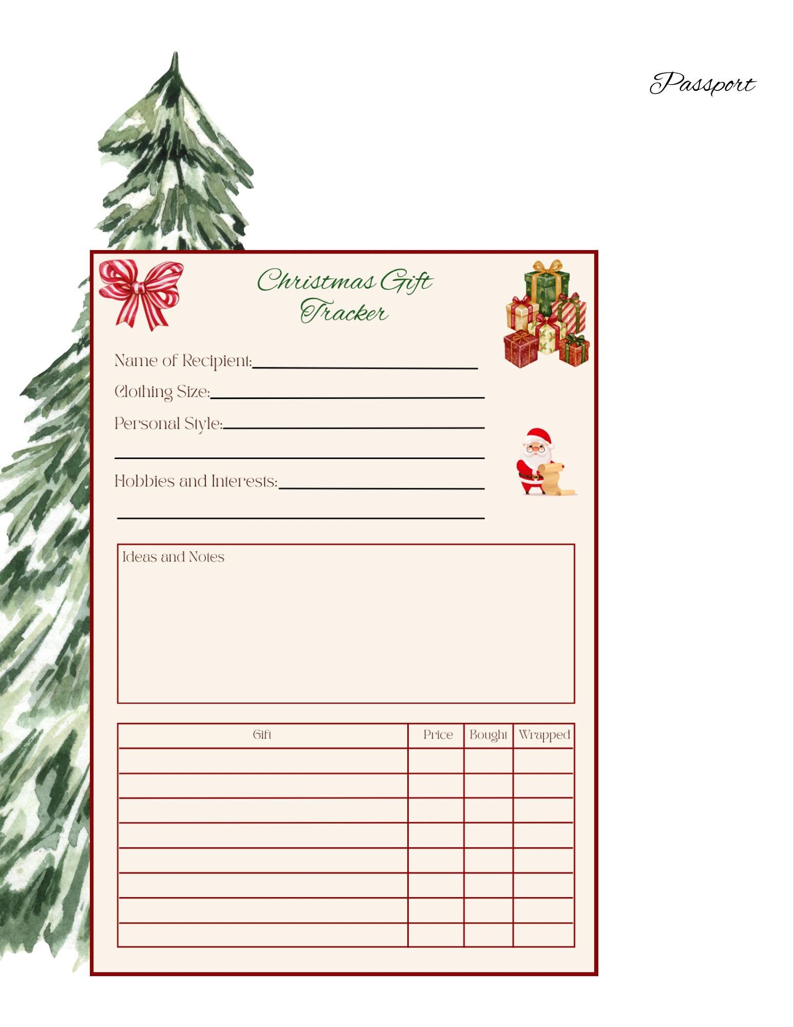 Includes: 1 Christmas Gift Tracker printable 3 sizes — Standard (US Letter), A5, and Passport