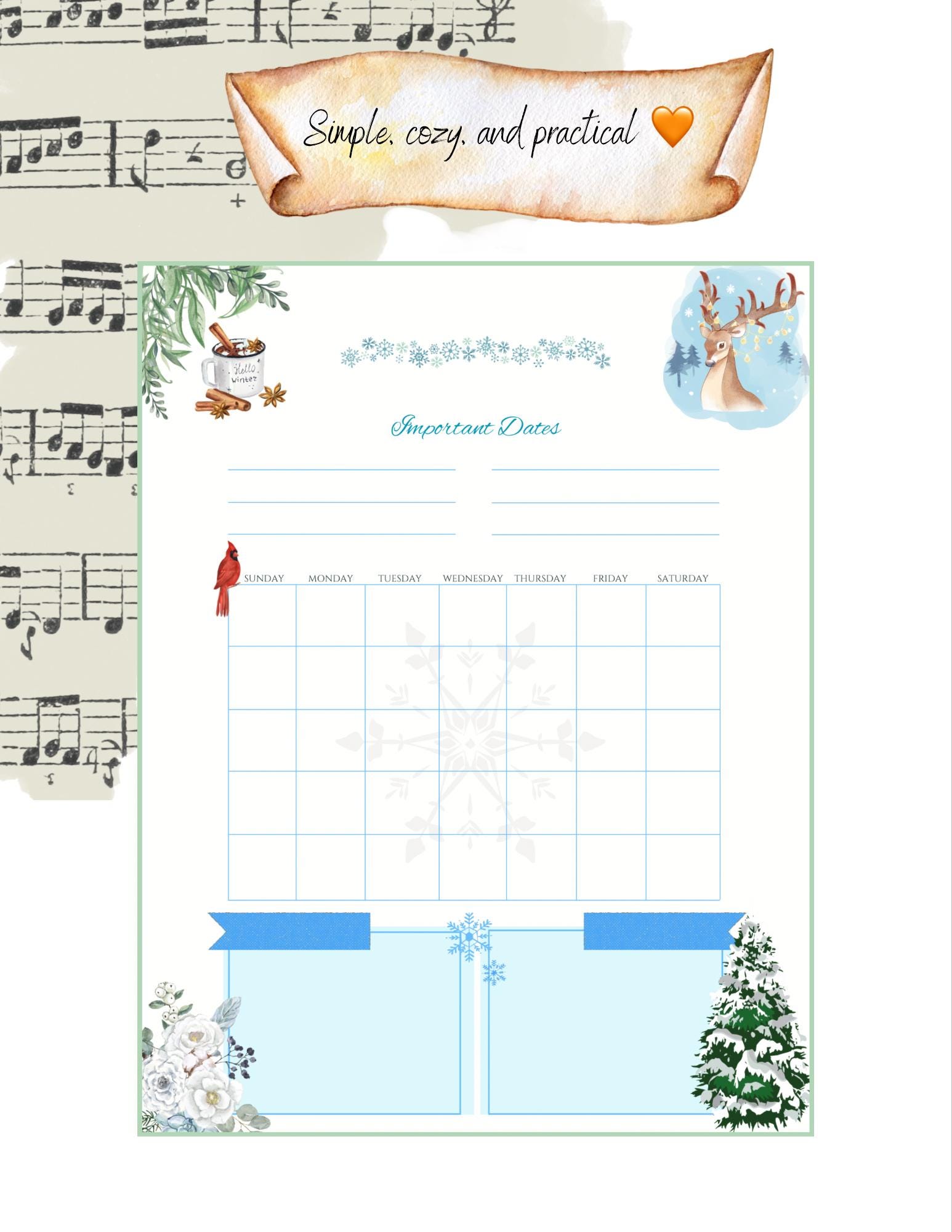 Why You’ll Love It: Simple and practical layout Cozy country aesthetic Undated for flexible yearly use Print at home, reuse forever