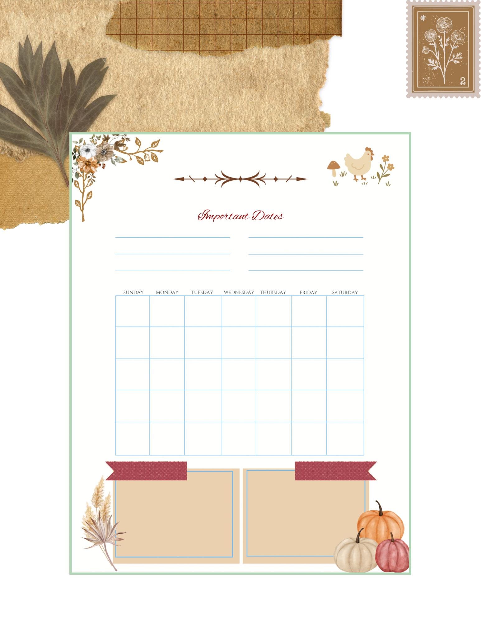 Design Details: Hand-sketched leaves, simple rustic borders, and cozy textures make this printable a natural fit for farmhouse lovers and minimal planners alike.