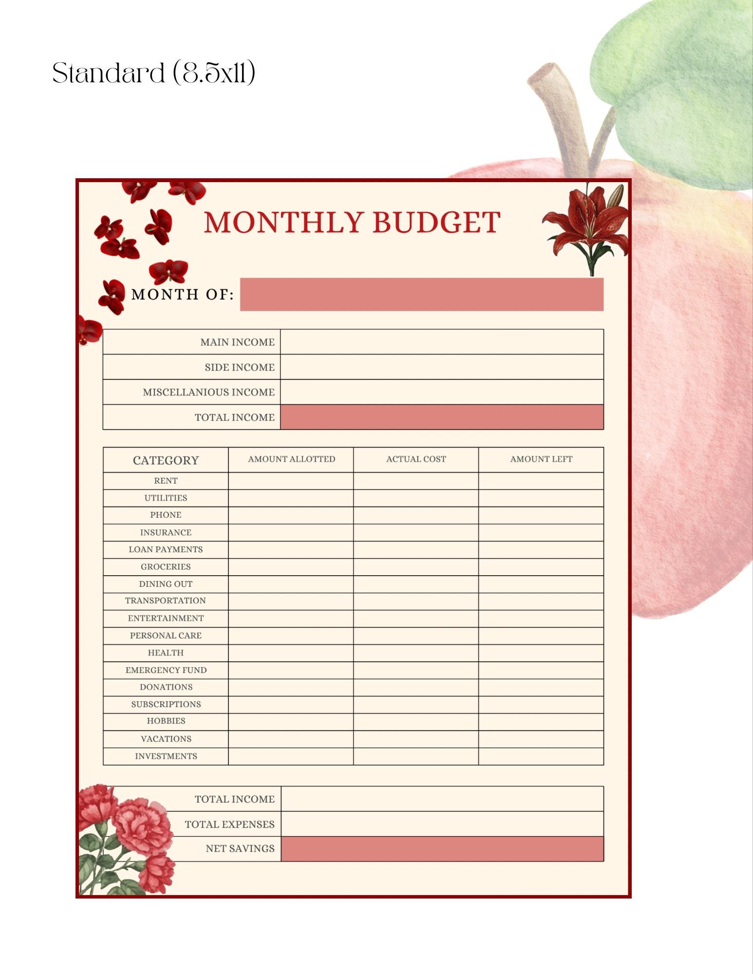 Why You’ll Love It Soft red floral watercolor design for a warm, inviting look. Keeps budgeting simple, visual, and stress-free. Easy to print, reuse, and personalize each month. A lovely way to blend organization with cozy home aesthetics.