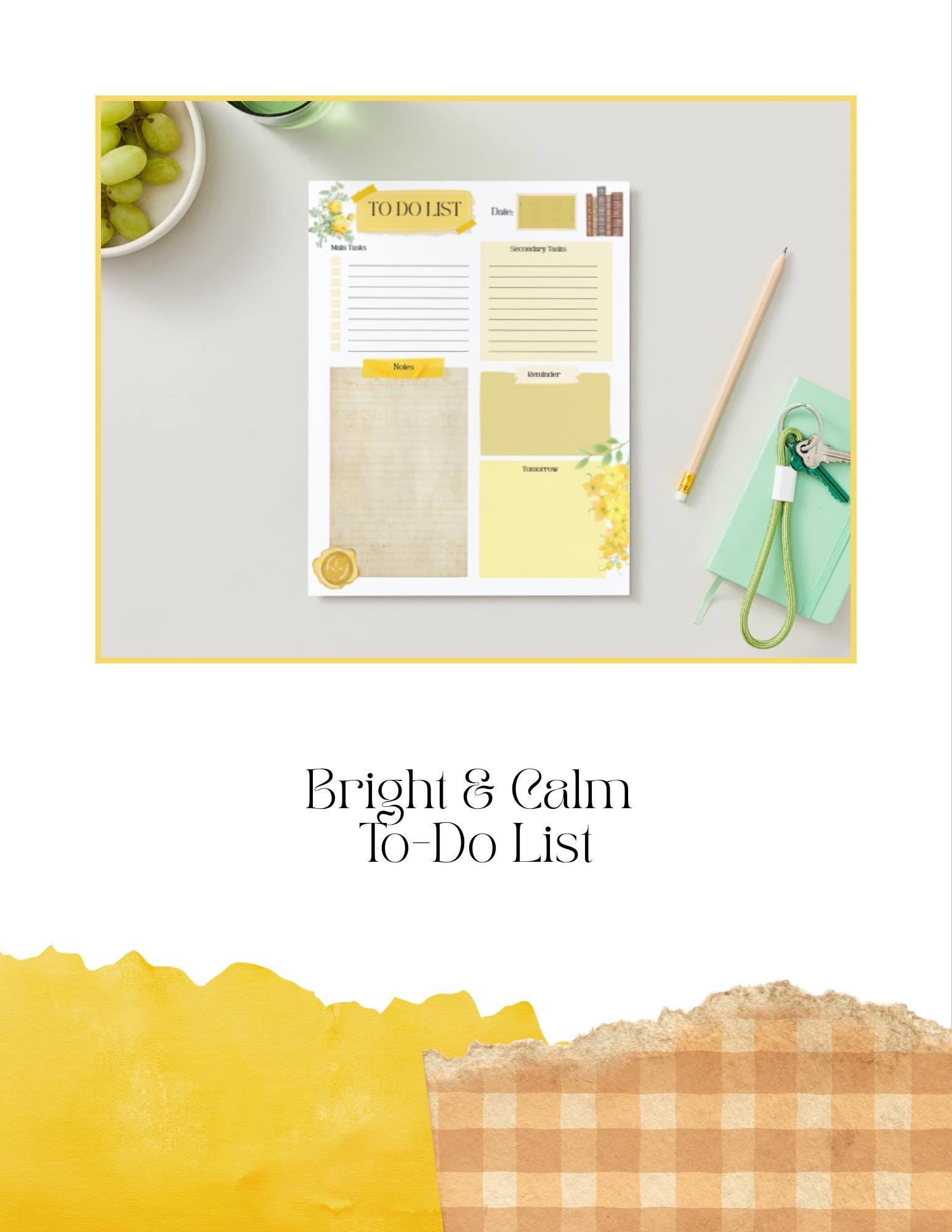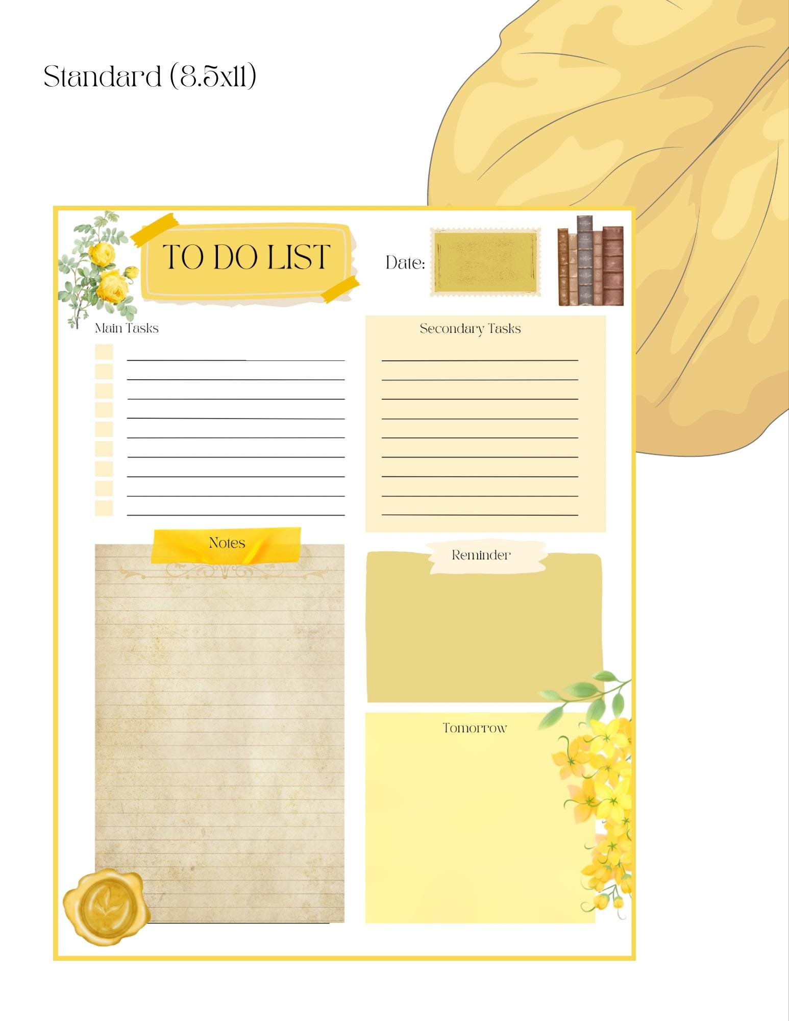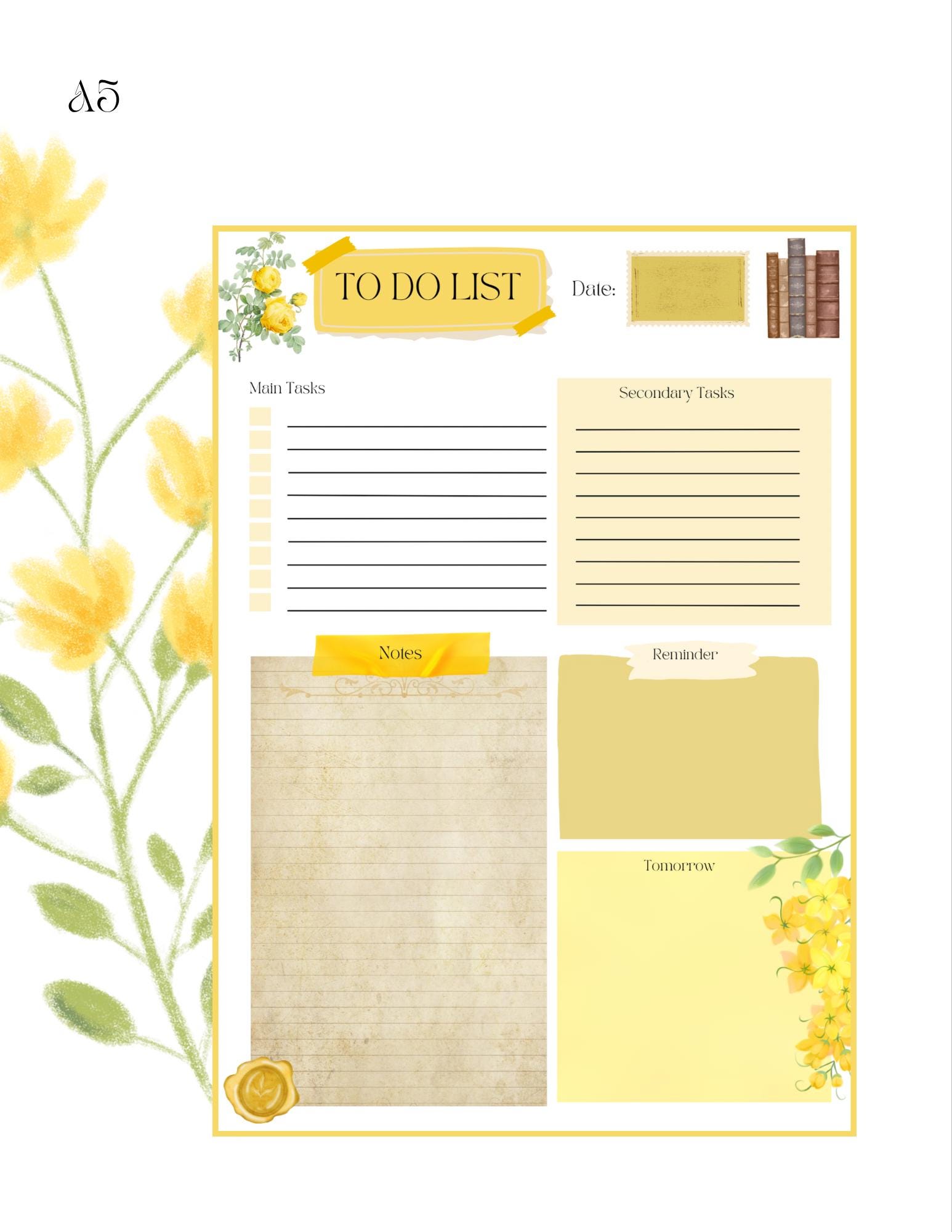 Why You’ll Love It Antique-inspired design with soft yellow tones. Helps you plan your day with clarity and cheer. Easy to print and reuse. A warm and uplifting addition to your planner or workspace.