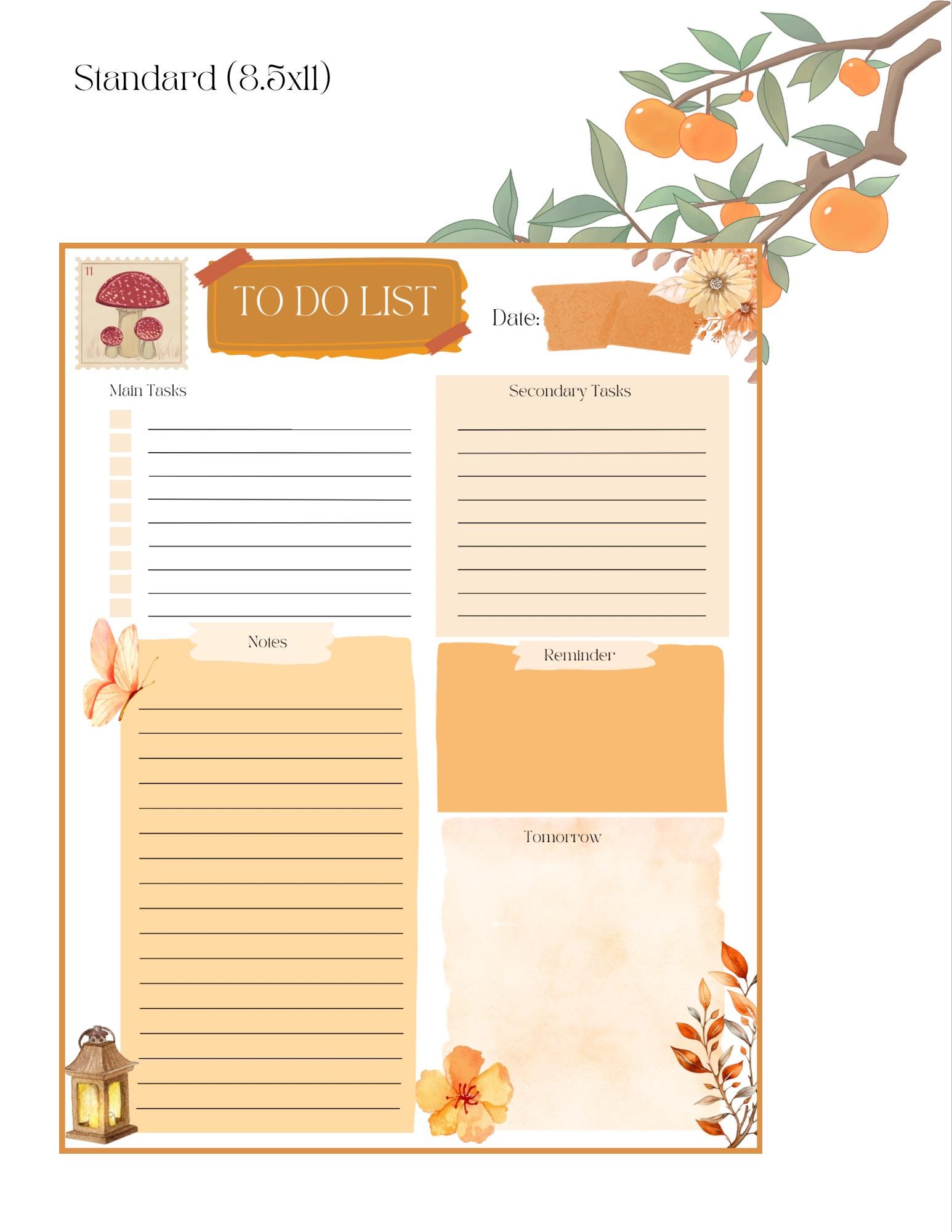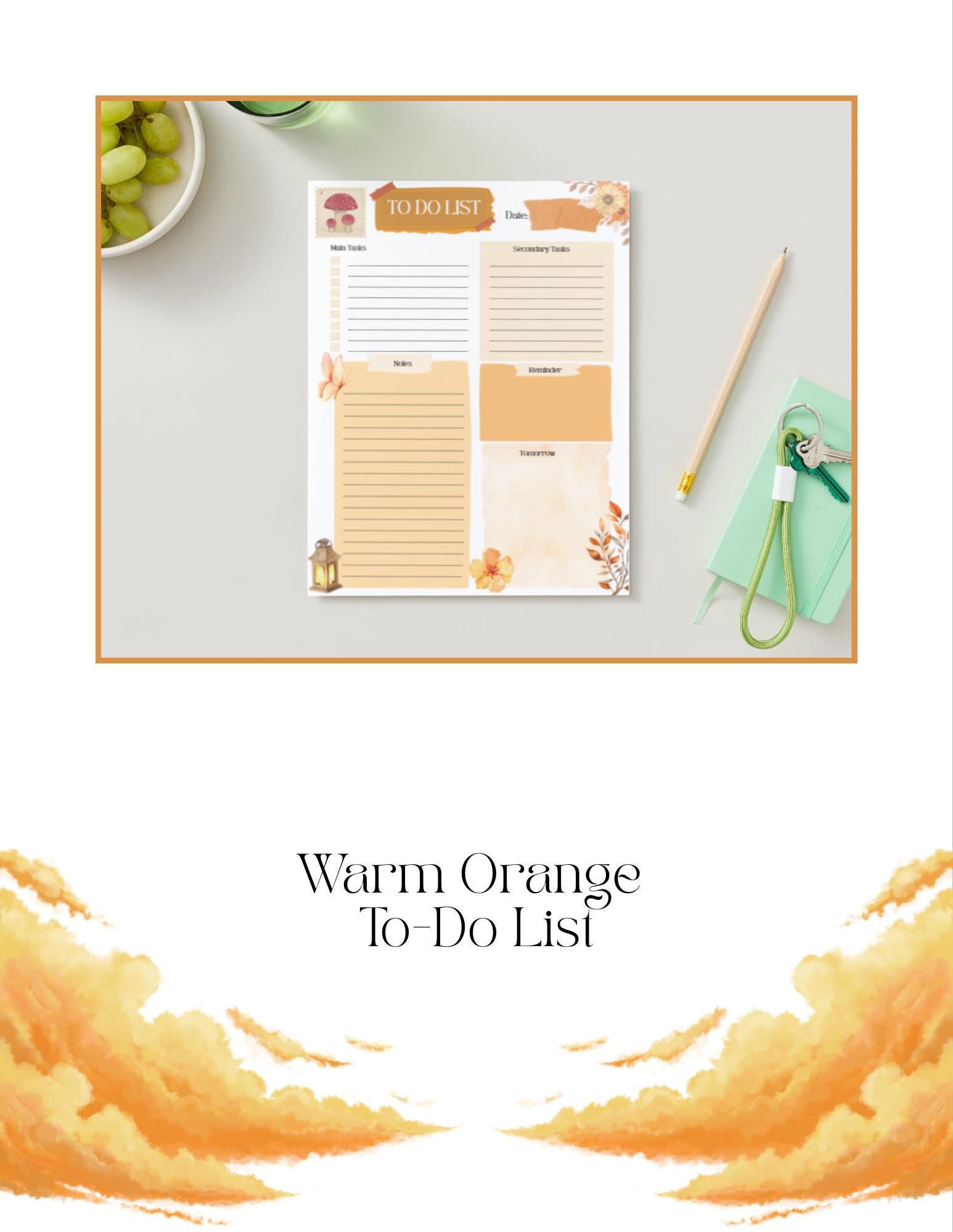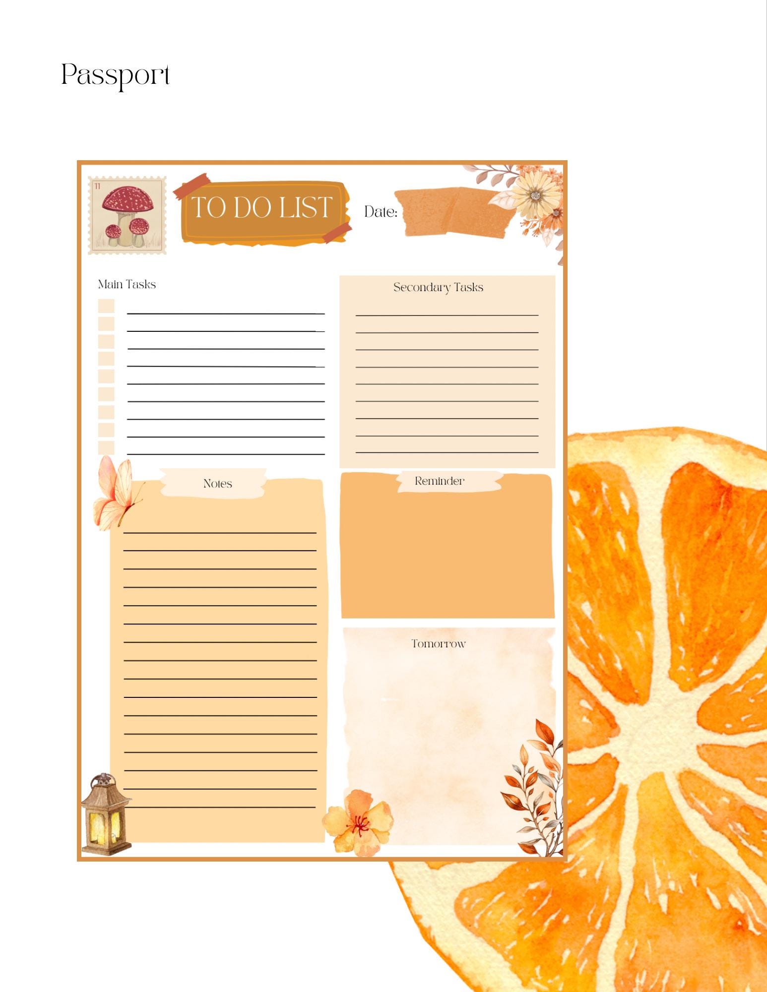 Includes: 1 Orange Antique To-Do List printable 3 sizes — Standard (US Letter), A5, and Passport
