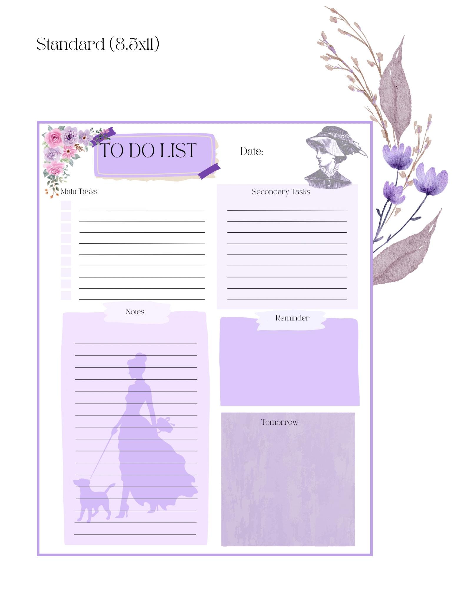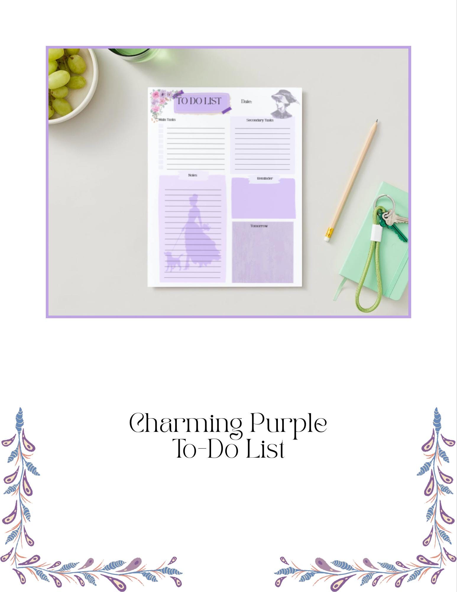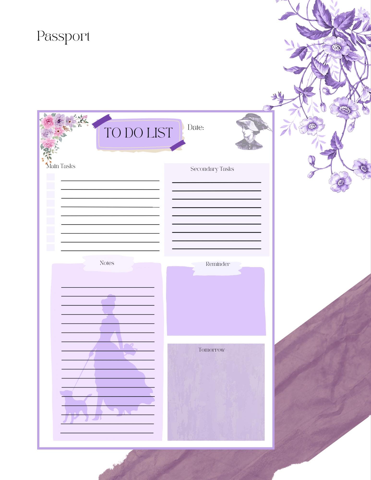 Includes: 1 Purple Antique To-Do List printable 3 sizes — Standard (US Letter), A5, and Passport