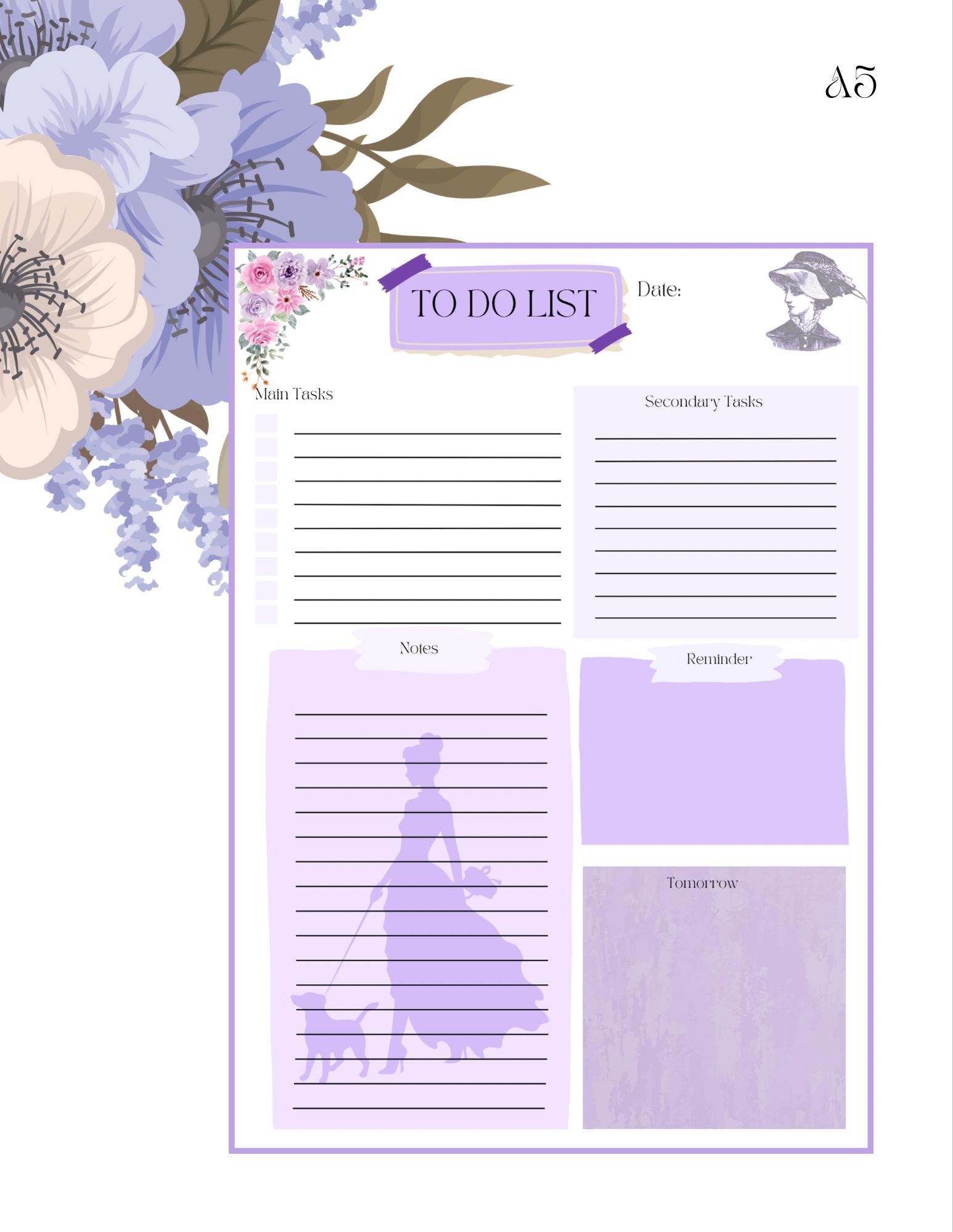 Why You’ll Love It Antique design with soft purple accents. Keeps your day calm, clear, and organized. Beautifully printable and reusable. A cozy touch for planners and daily journals.