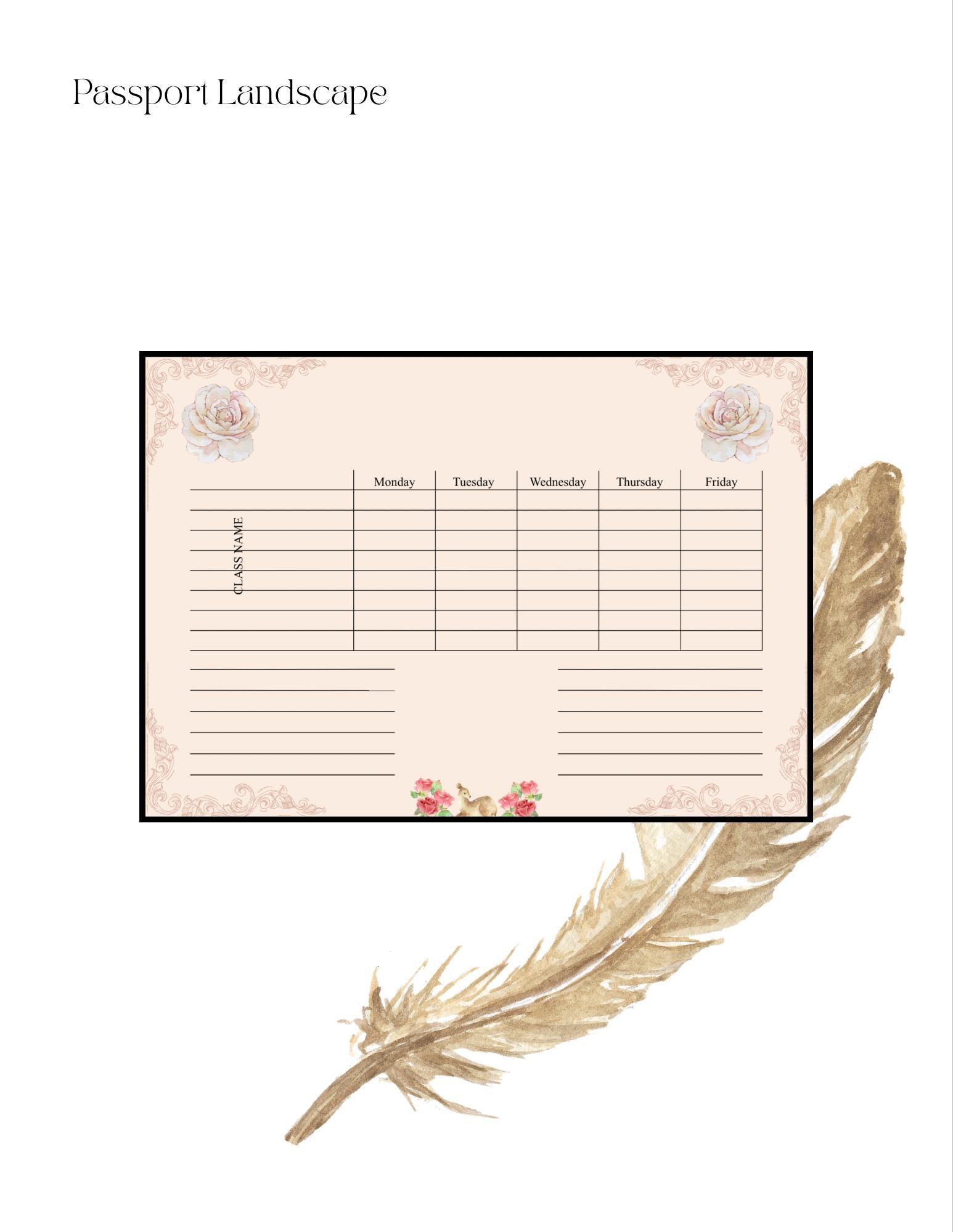 Includes: 1 Victorian Rose & Deer Class Schedule printable 3 sizes — Standard (US Letter), A5, and Passport (All Landscape)