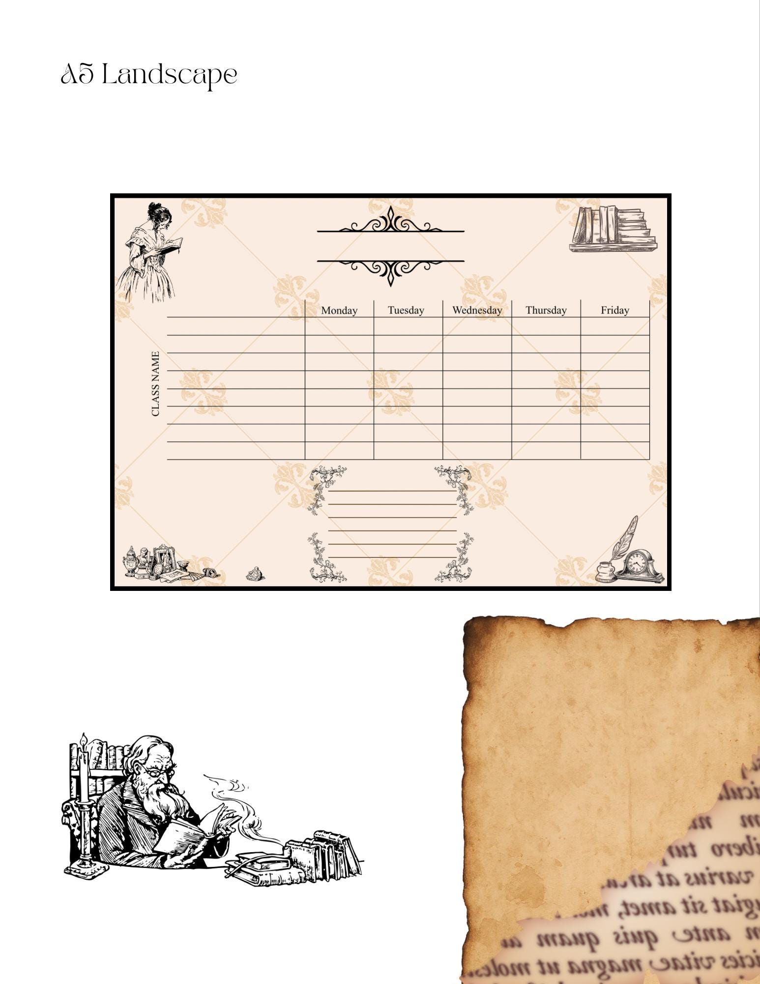 Pairs perfectly with the other Victorian and Shabby Chic Class Schedule Printables, including the Rose & Deer, Old Alchemy, and Blue Victorian Art Deco designs. Collect all five for a full antique study set.