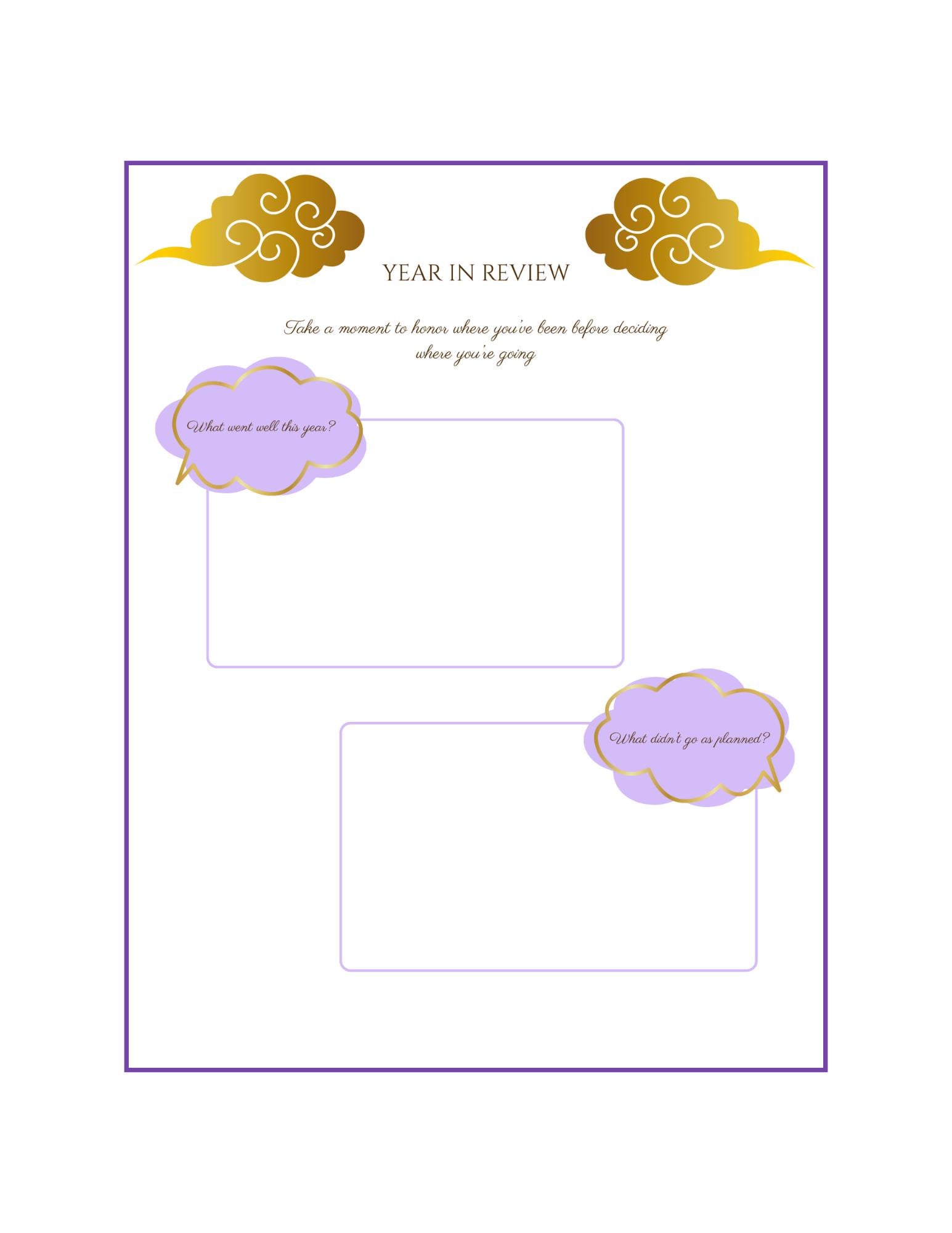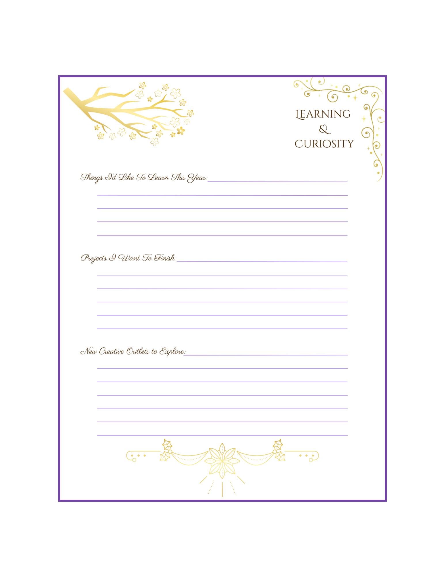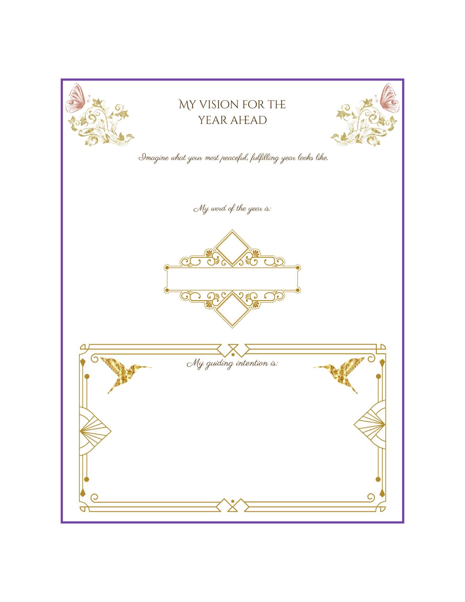 What’s Included: Year in Review & Lessons Learned Reflection Pages Gratitude & Growth Journal Vision for the Year Ahead + Word of the Year Page Goal Brainstorm & Top 5 Priorities Sheets Vision Board Page Habit Tracker & Habits to Build / Release Morning & Evening Routine Planner Health, Finance, Family & Hobbies Planners Affirmations & Encouragement Page Monthly Reflection Template