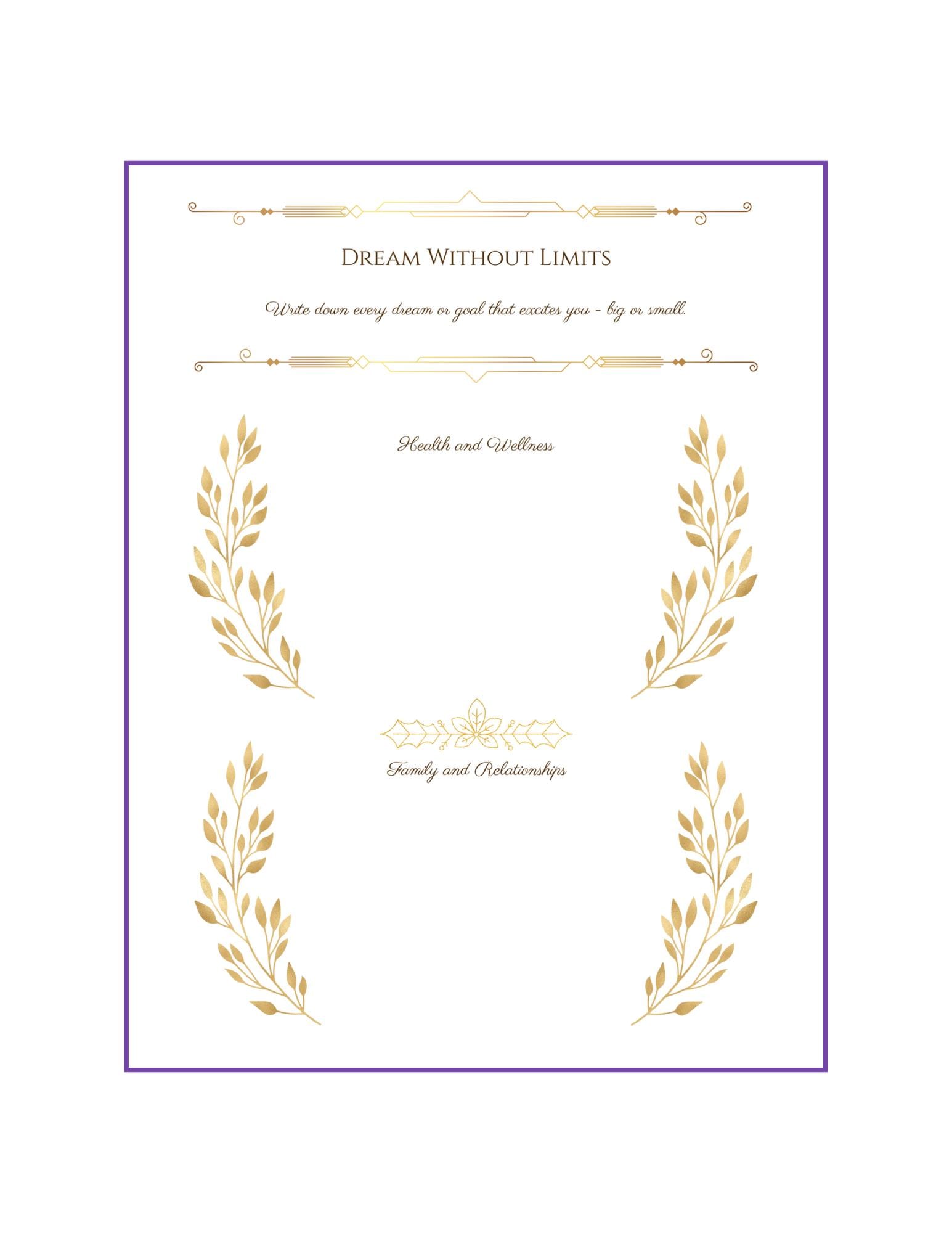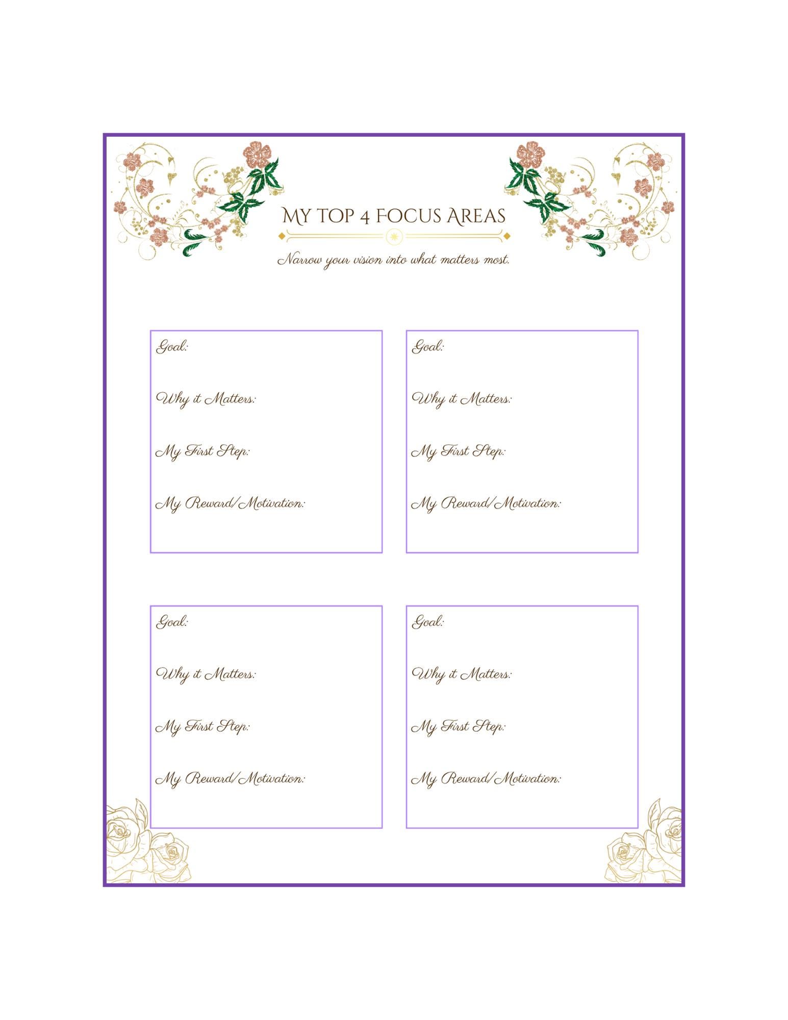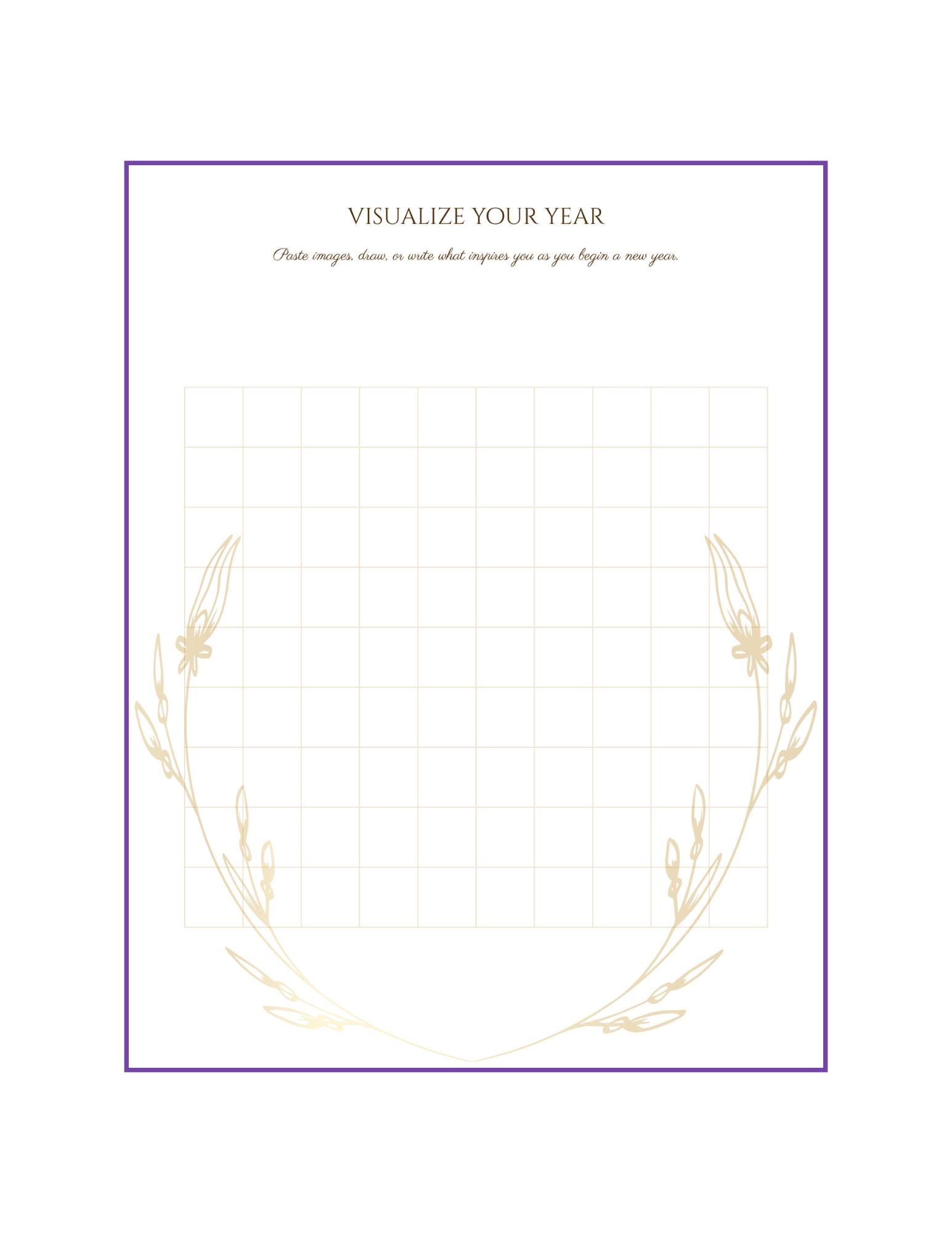 What’s Included: Year in Review & Lessons Learned Reflection Pages Gratitude & Growth Journal Vision for the Year Ahead + Word of the Year Page Goal Brainstorm & Top 5 Priorities Sheets Vision Board Page Habit Tracker & Habits to Build / Release Morning & Evening Routine Planner Health, Finance, Family & Hobbies Planners Affirmations & Encouragement Page Monthly Reflection Template