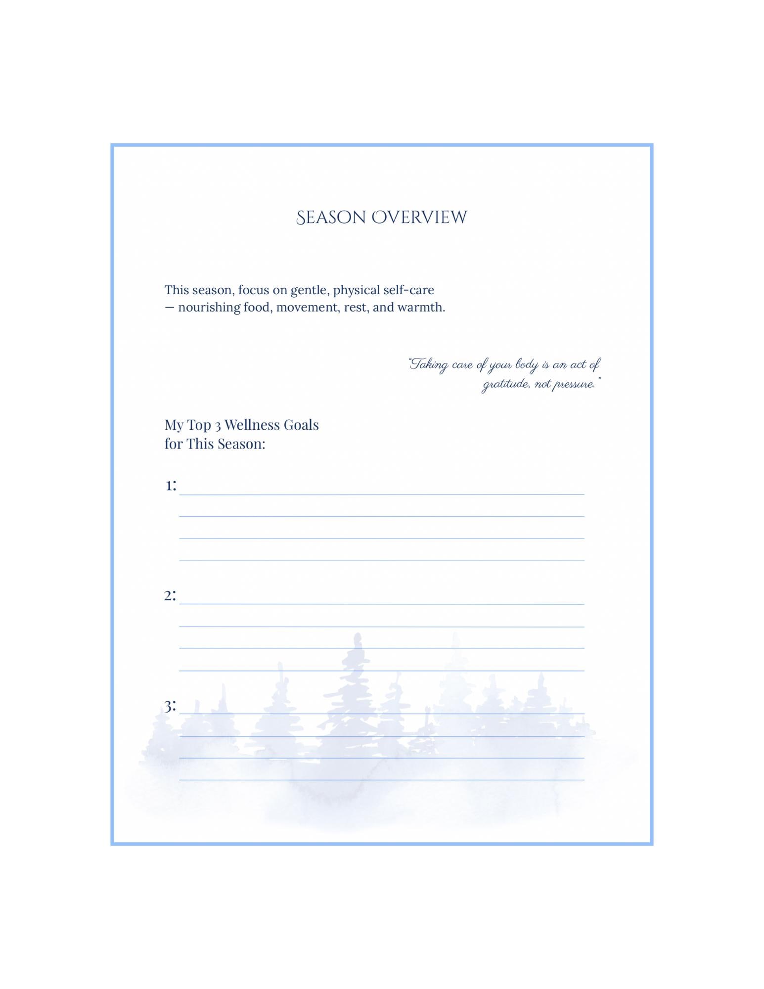 This printable self-care bundle helps you stay healthy and balanced during the colder months — from hydration and meals to rest and movement. Gentle, cozy pages guide you through mindful wellness routines that make you feel refreshed, not restricted.