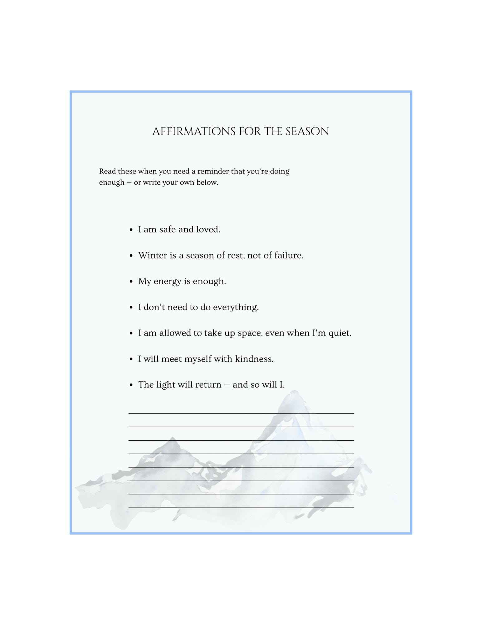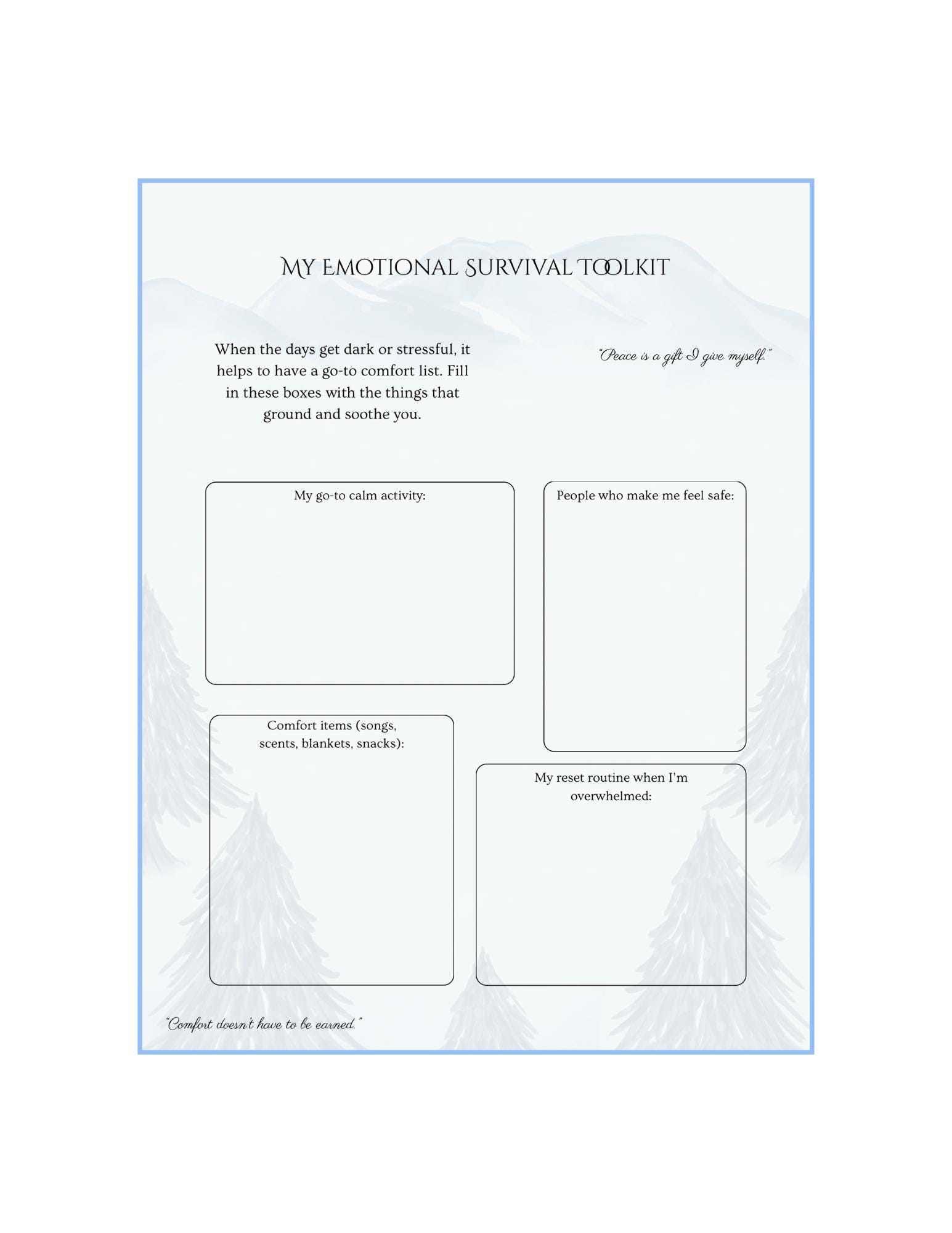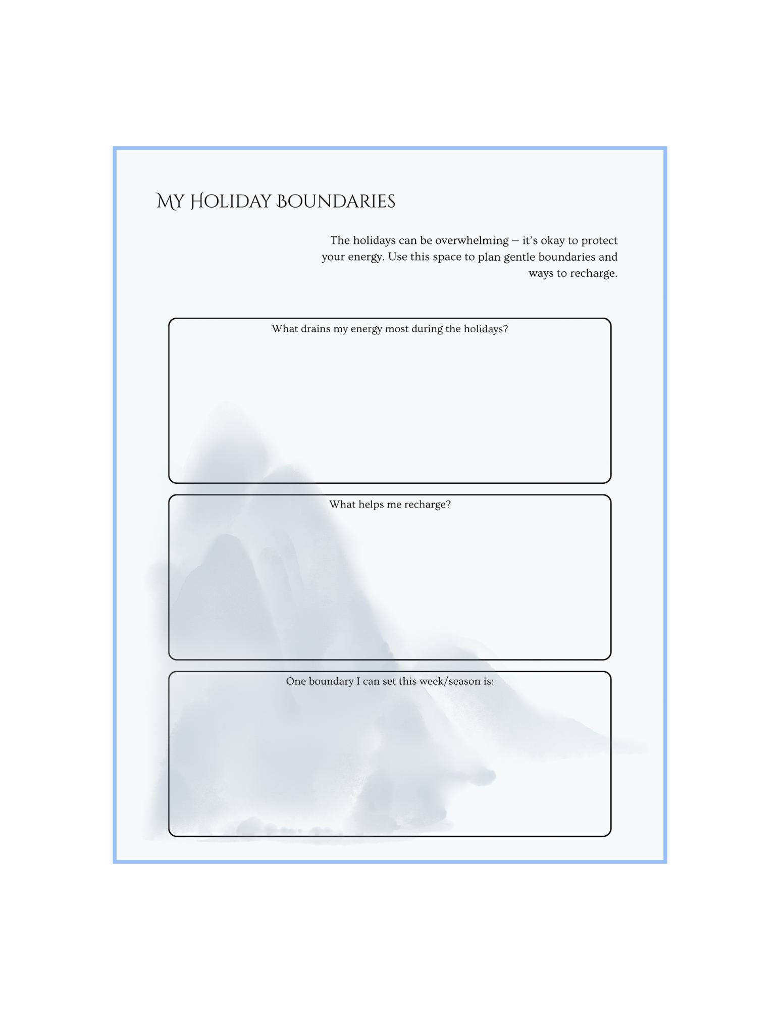 What’s Included: 13 guided printable pages for emotional and mental well-being Winter check-in + holiday boundary planner Daily self-care log + gratitude and reflection pages Emotional toolkit + affirmations to stay centered Cozy winter colors and gentle quotes Delivered as a high-quality PDF (download and print unlimited times)