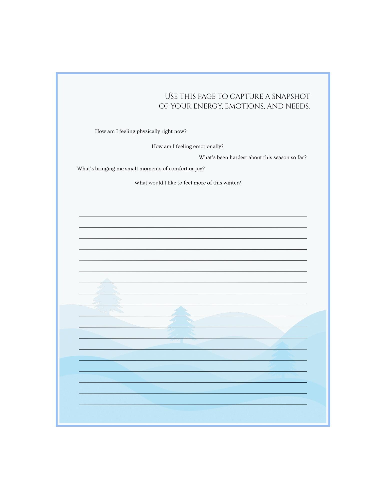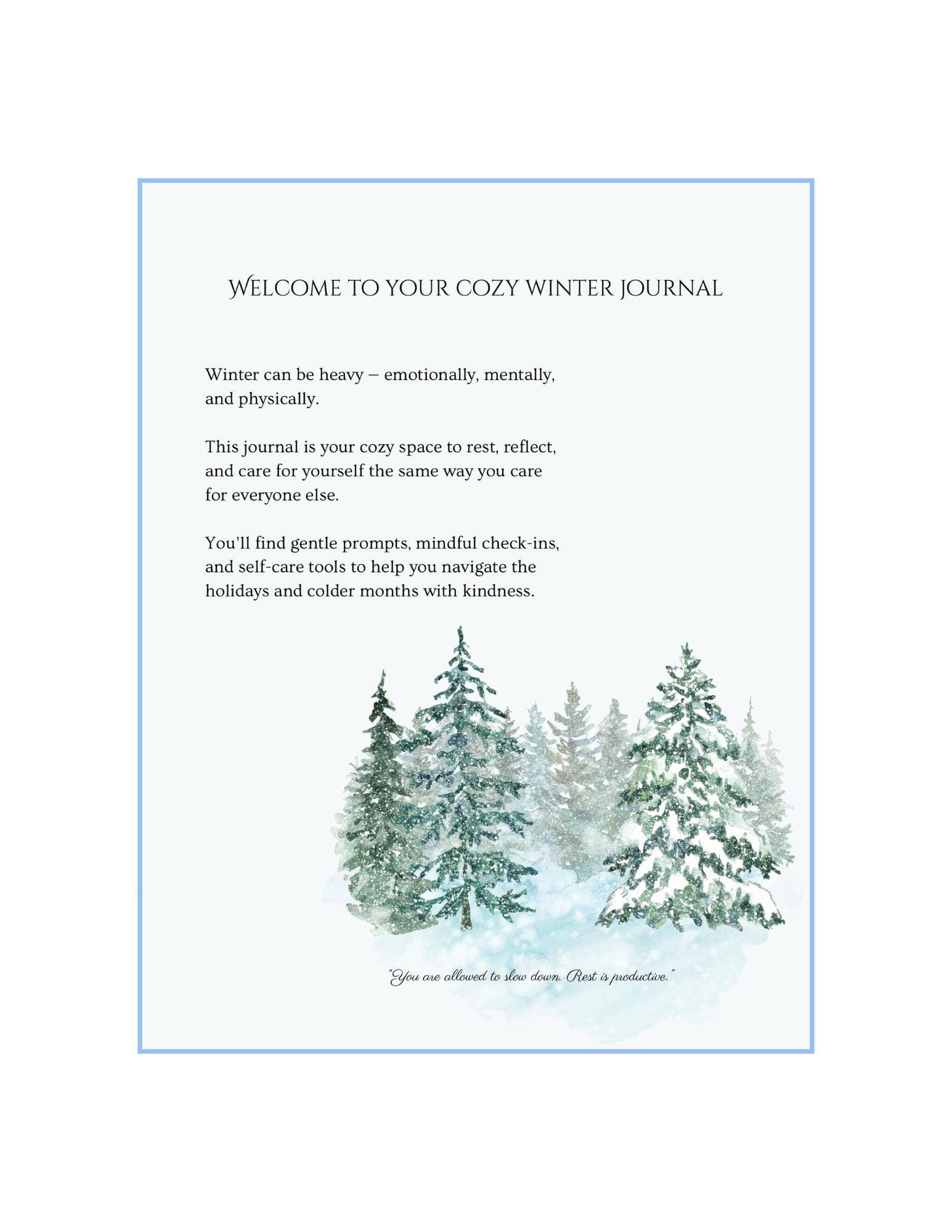 Perfect For: Winter blues, seasonal stress or holiday overwhelm ADHD and anxiety support journaling Cozy self-care nights with tea, blankets & candles Mindful reflection and therapy home practice