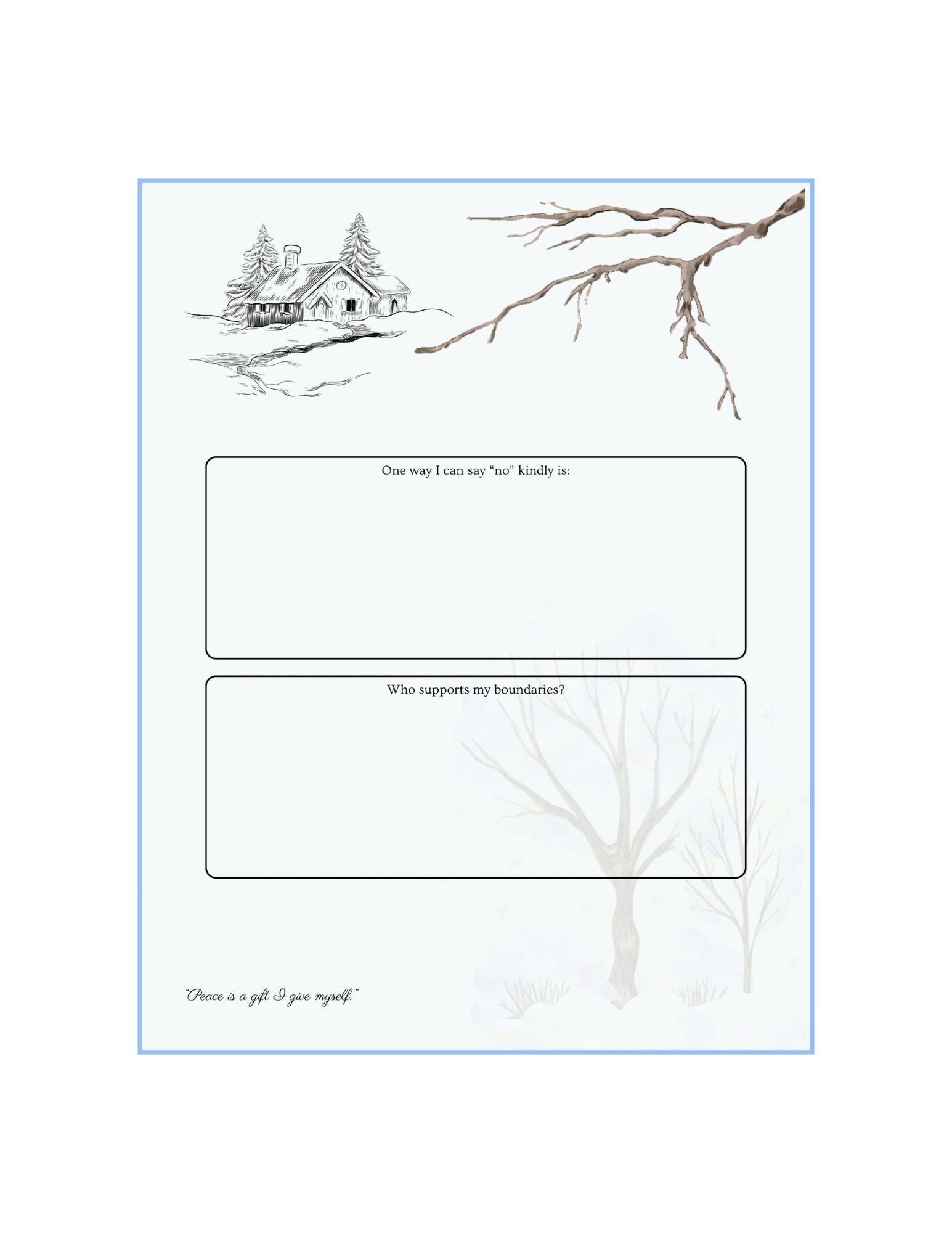 Inside you’ll find comforting prompts, mindful check-ins, and soft seasonal pages to help you rest, set boundaries, and care for your mental health.