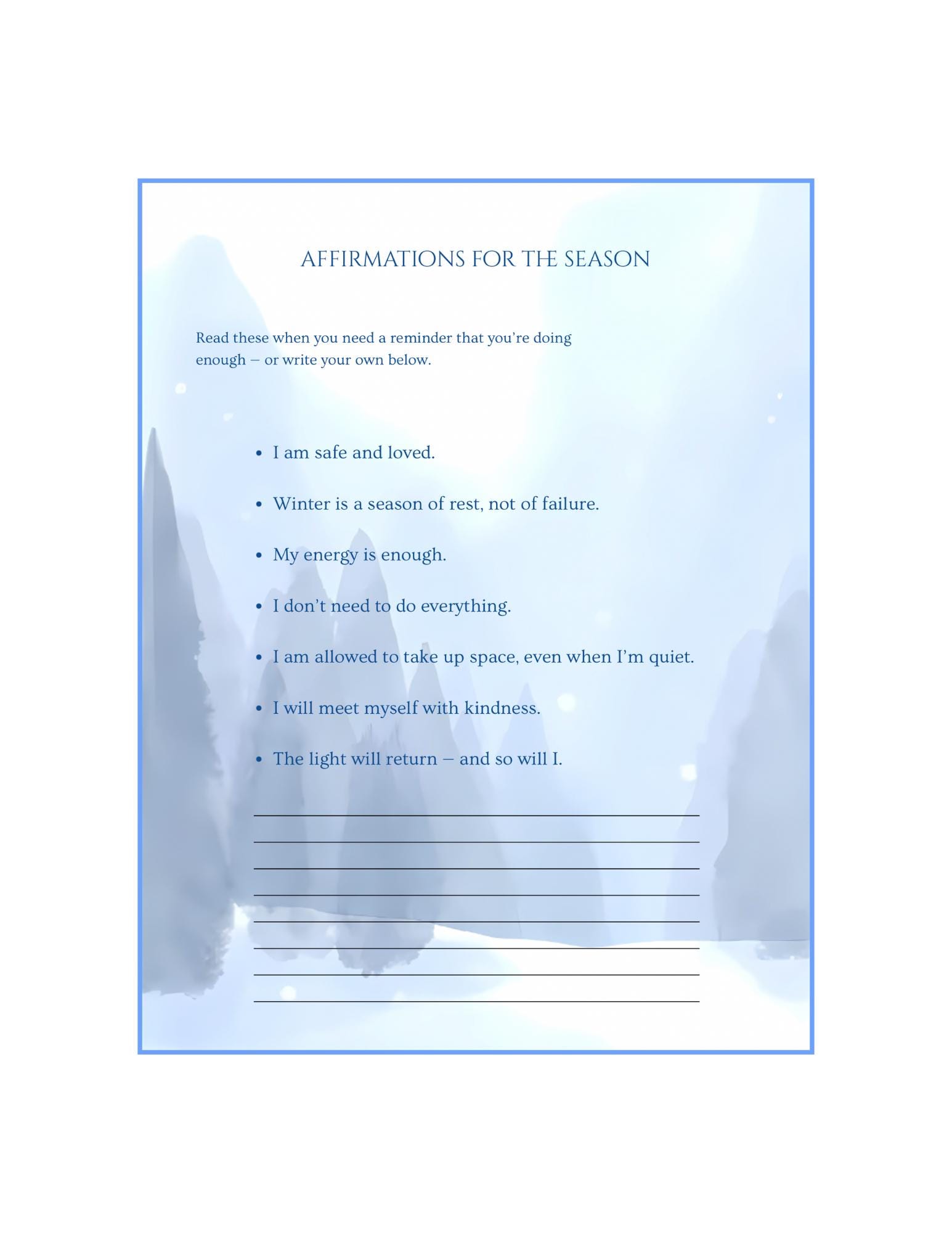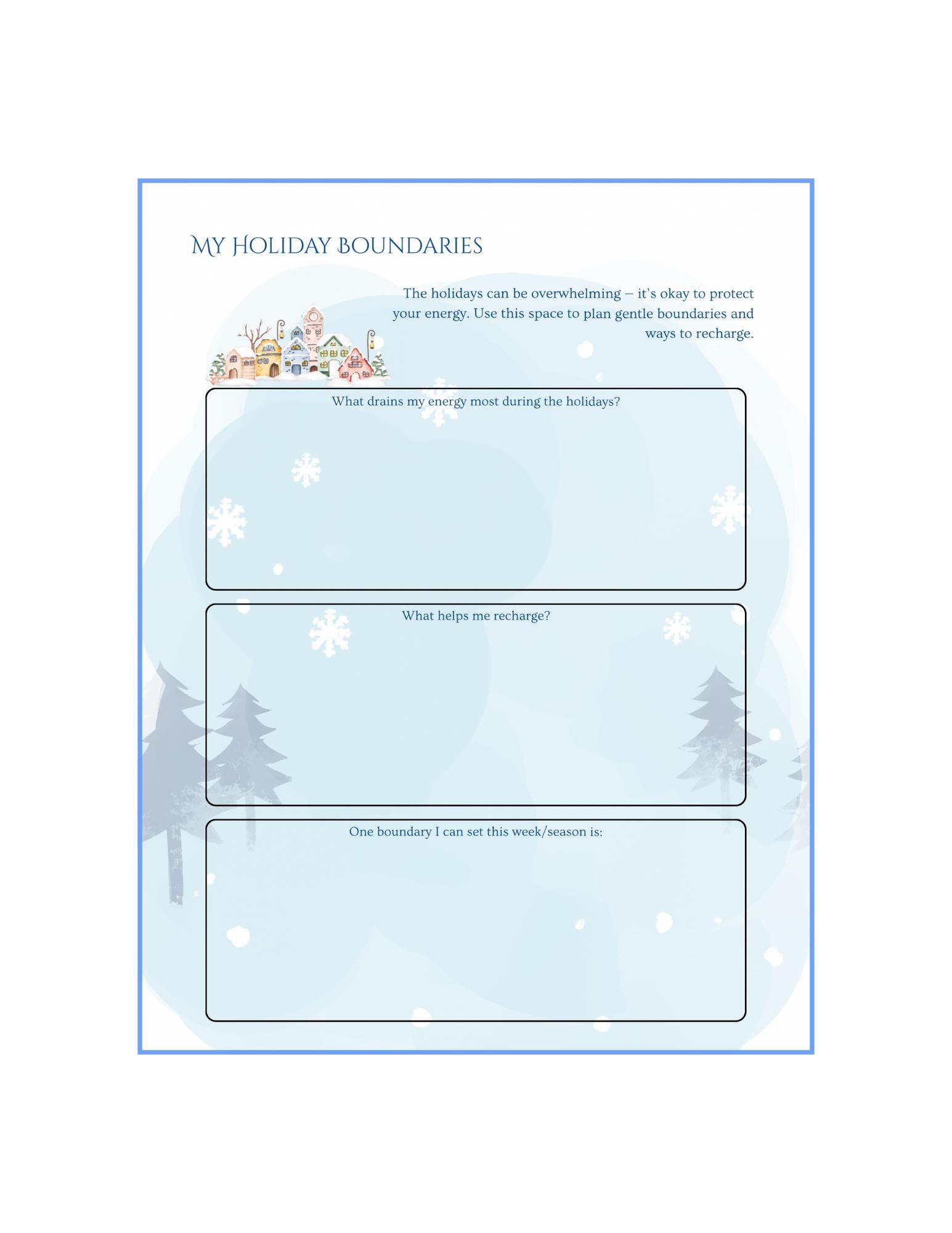 Blue Winter Self-Care Journal | Guided Holiday Survival Printable PDF