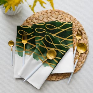 Elegant gold-on-green Christmas napkins — the perfect finishing touch for your holiday table and a beautiful match to the Golden Christmas Planner Bundle.