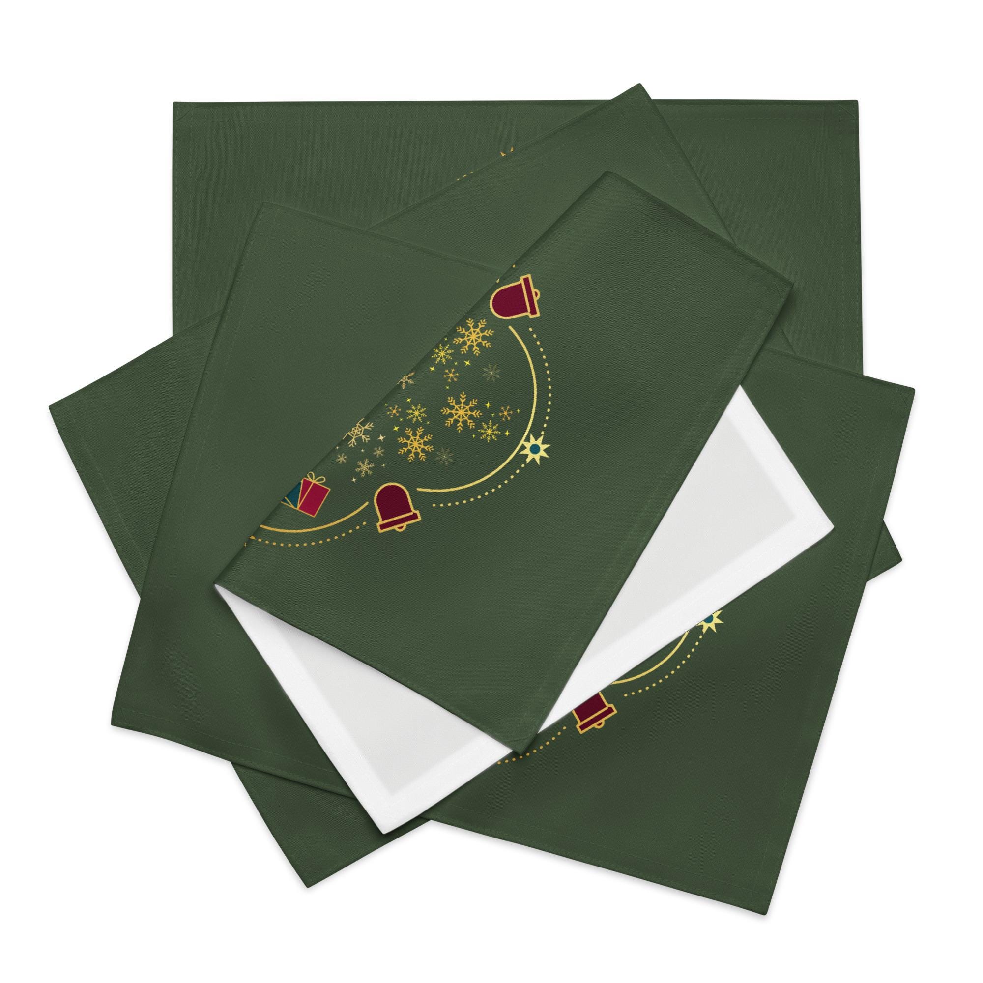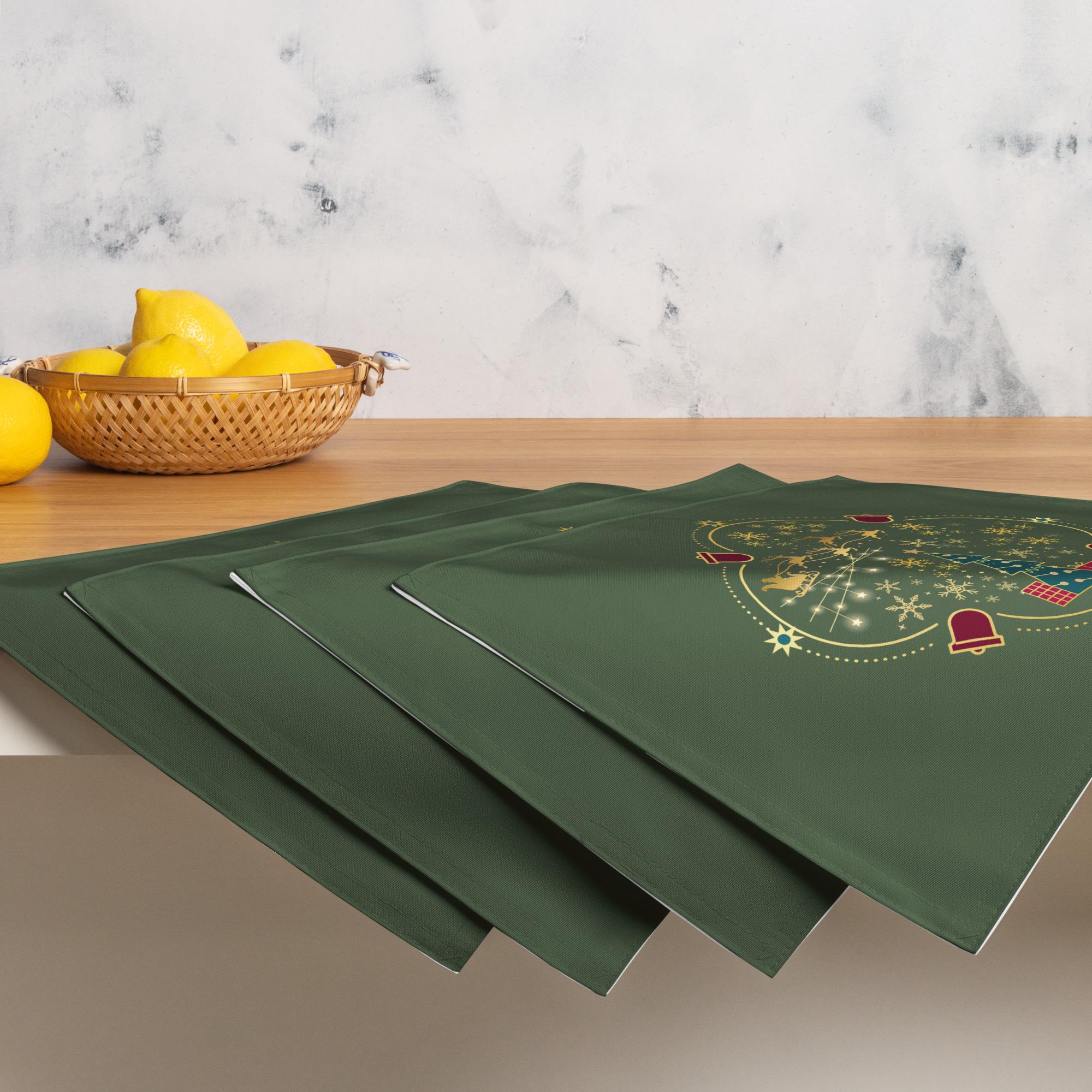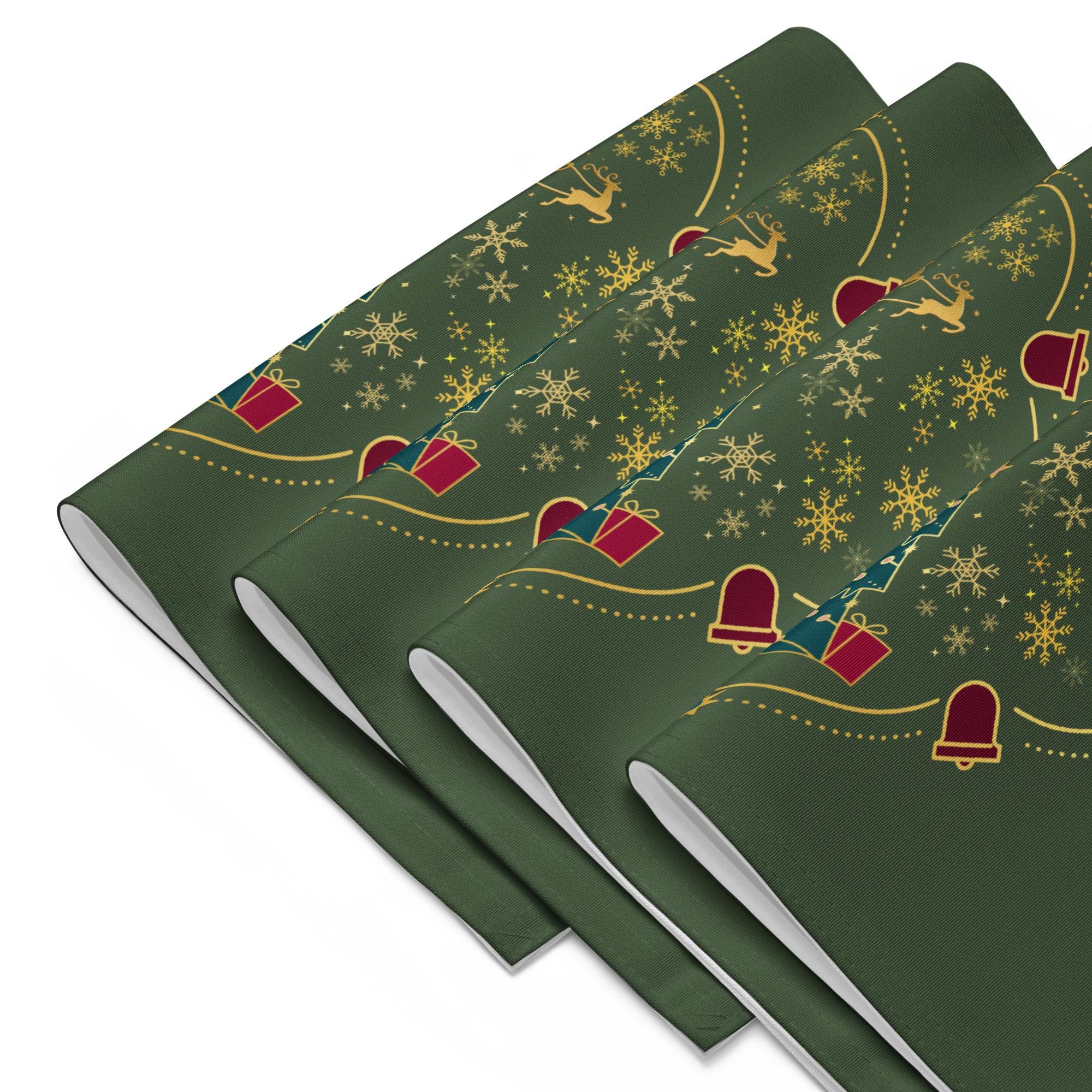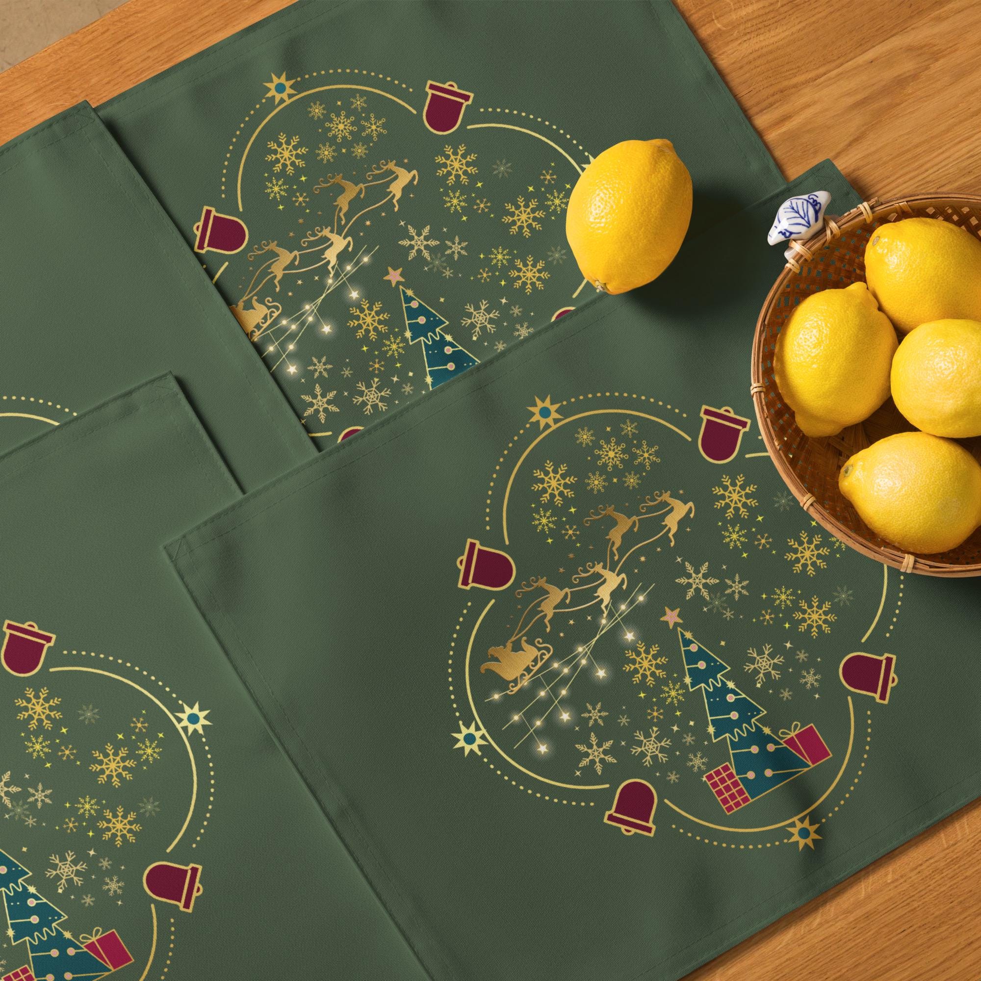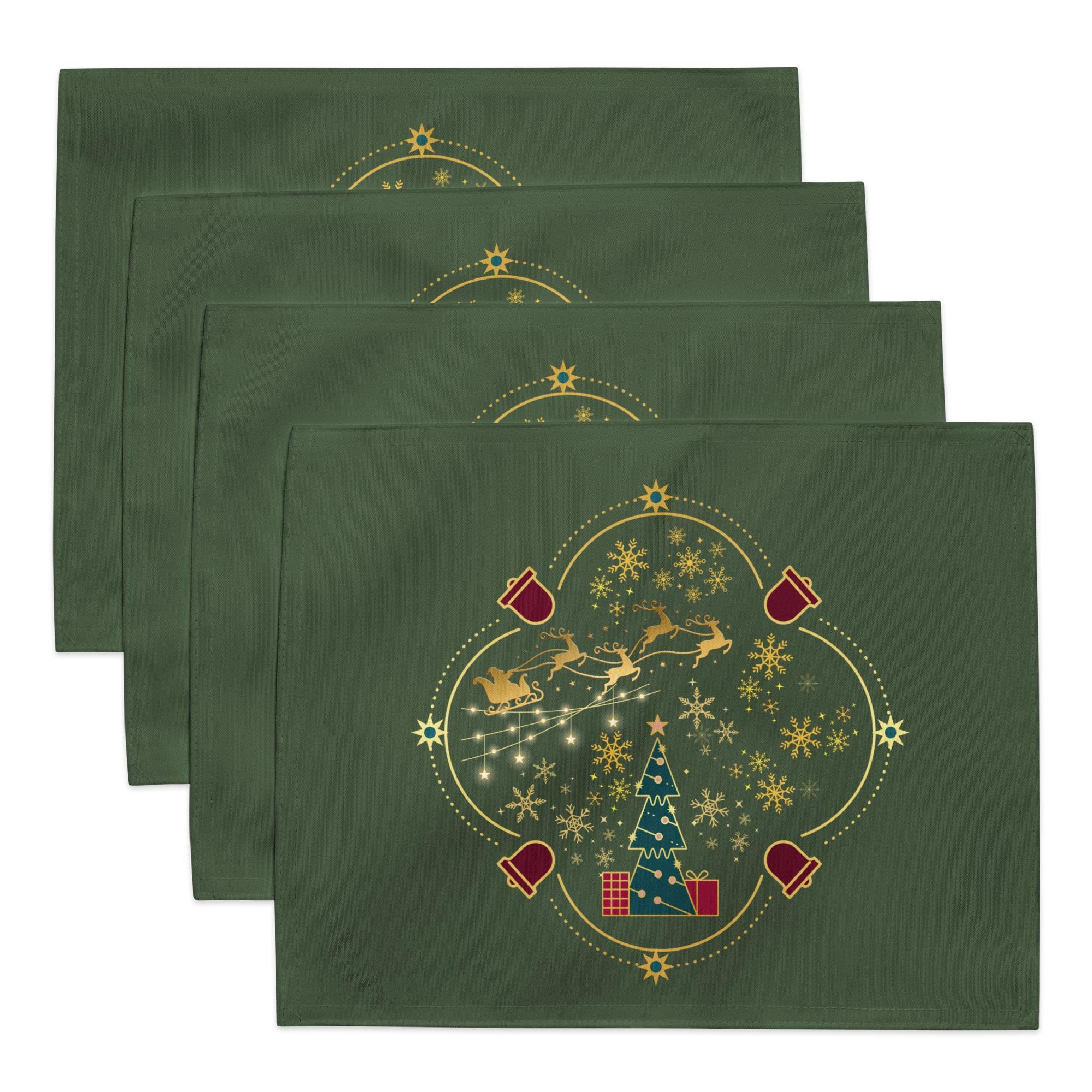 Create a warm, inviting holiday table with this set of four 18" × 14" Christmas placemats, featuring an elegant gold-on-green festive design. Durable, water-resistant, and beautifully printed, these placemats add both charm and function to your seasonal dining space.