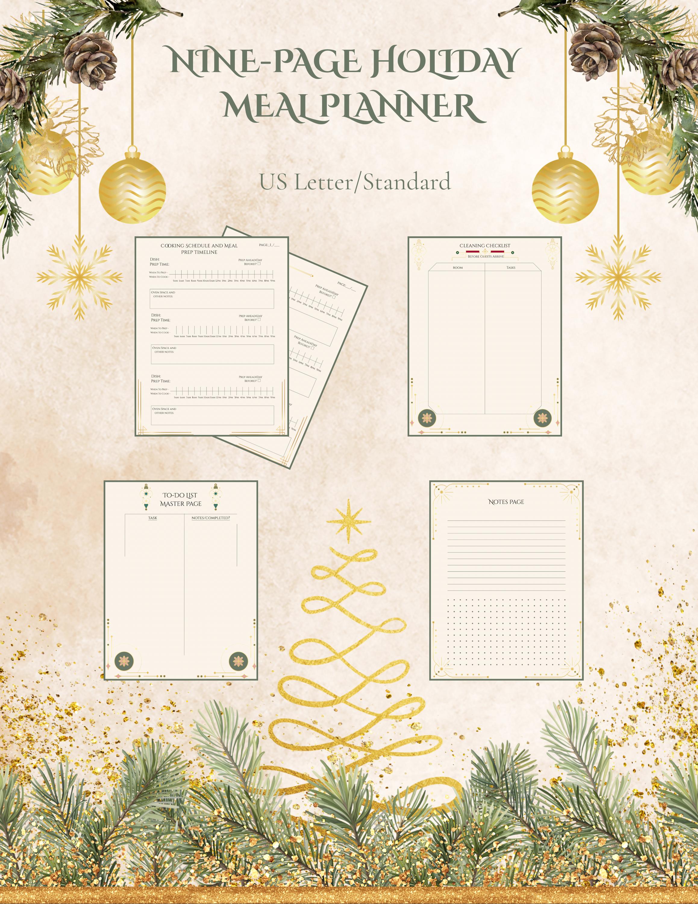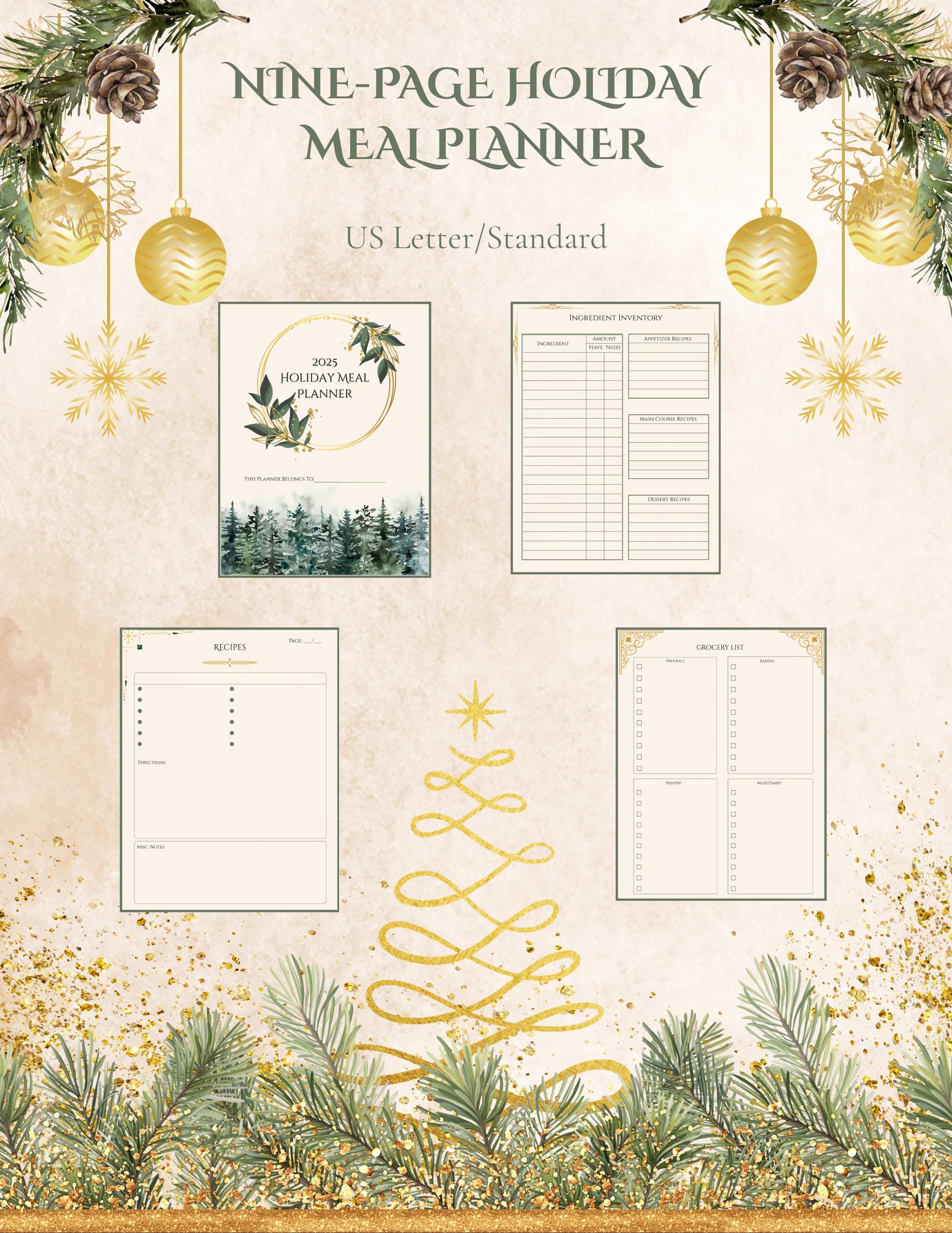 Product Details: Sizes: US Letter and A5 Instant digital download (PDF) Use for personal holiday planning Print unlimited copies Beautiful gold-on-green festive design