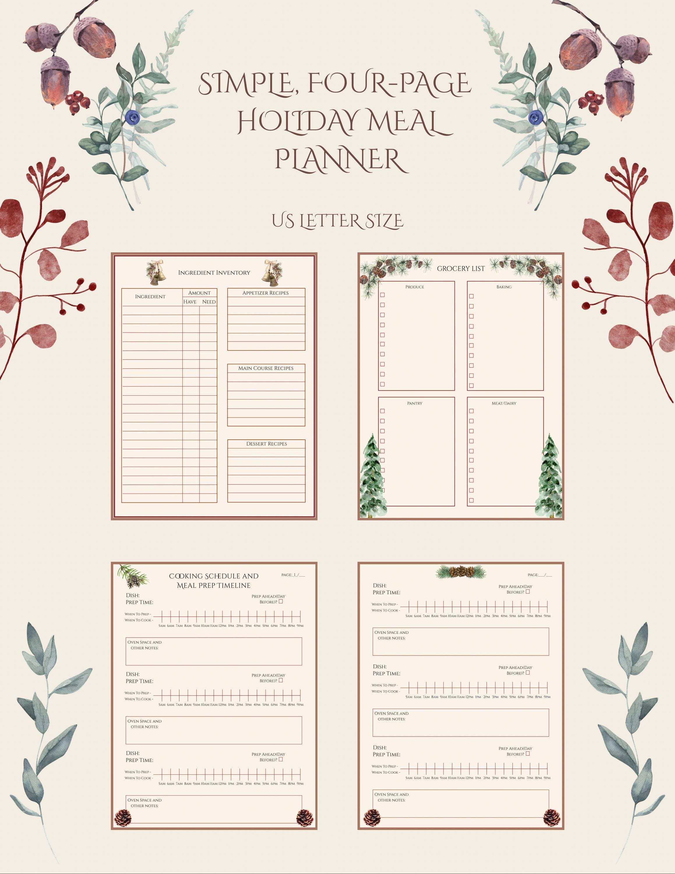Perfect For: Holiday meal prep Small gatherings Thanksgiving and Christmas Dinner Planning Simple holiday organization