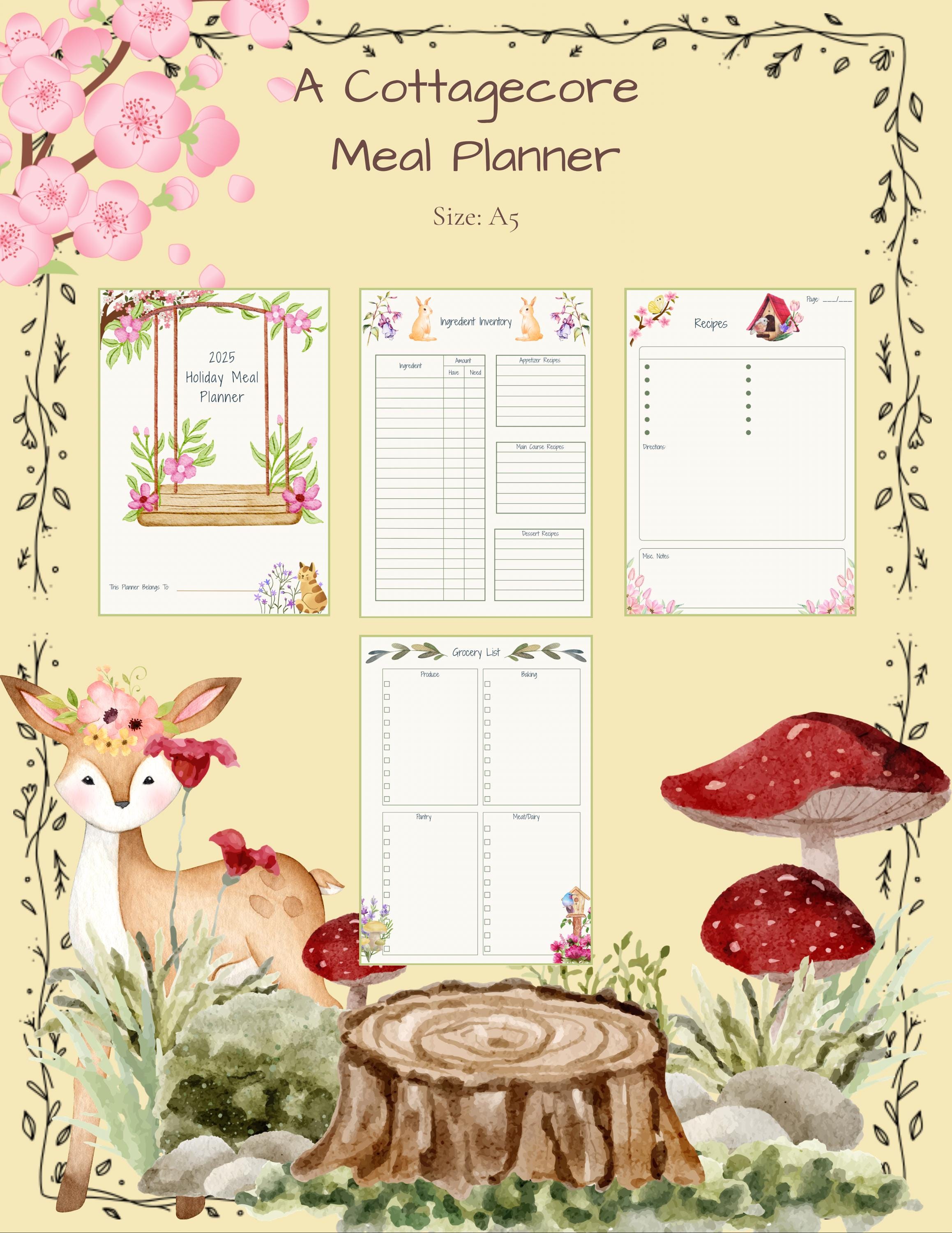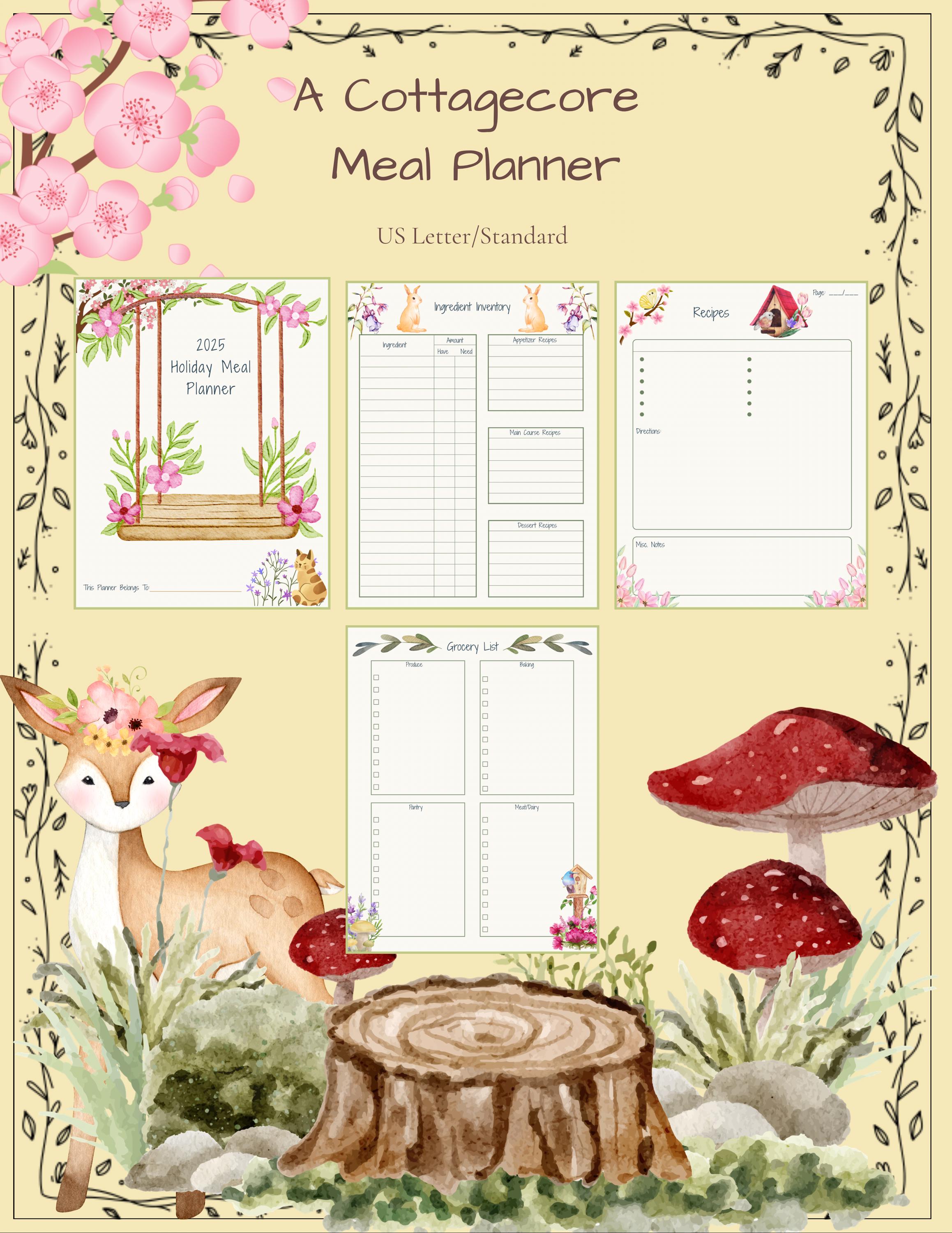 Make your holiday cooking calm, organized, and beautifully festive with this Cottagecore Meal Planner. This focused mini-bundle includes all the essential pages for planning elaborate meals, grocery lists, prep timelines, and cooking tasks — all wrapped in warm seasonal artwork.
