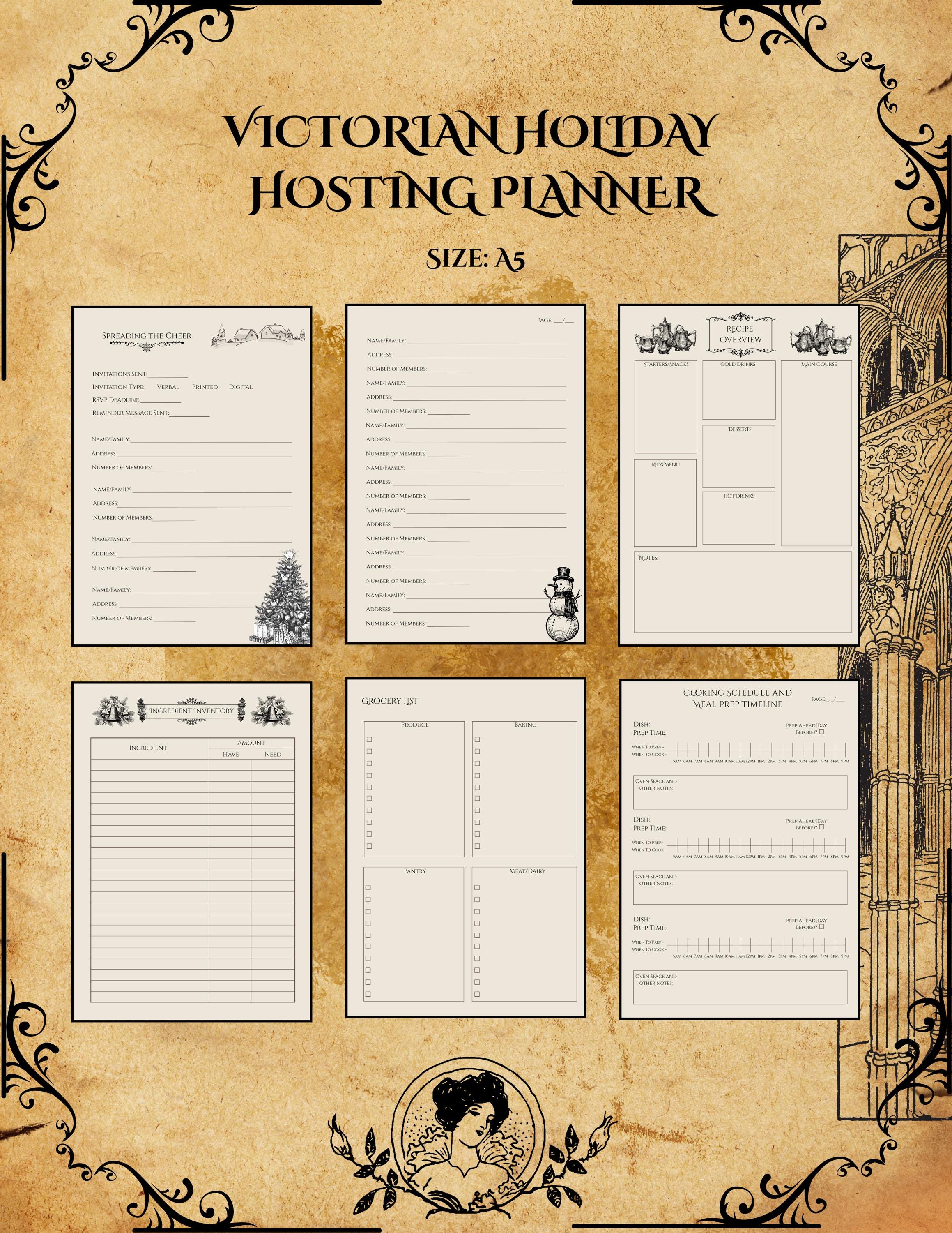 This 20-page printable planner helps you stay completely organized for Christmas, Thanksgiving, or any festive event with 10+ guests. From cleaning and decorating to meal prep, invitations, and timelines — everything is laid out for smooth, stress-free hosting. Designed in Tanglewood & Hearth's signature cozy holiday style with classic, antique themes, this planner helps you plan a beautiful gathering you can actually enjoy.